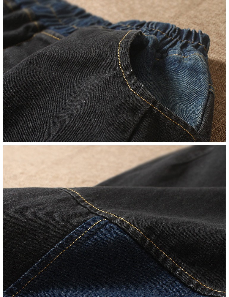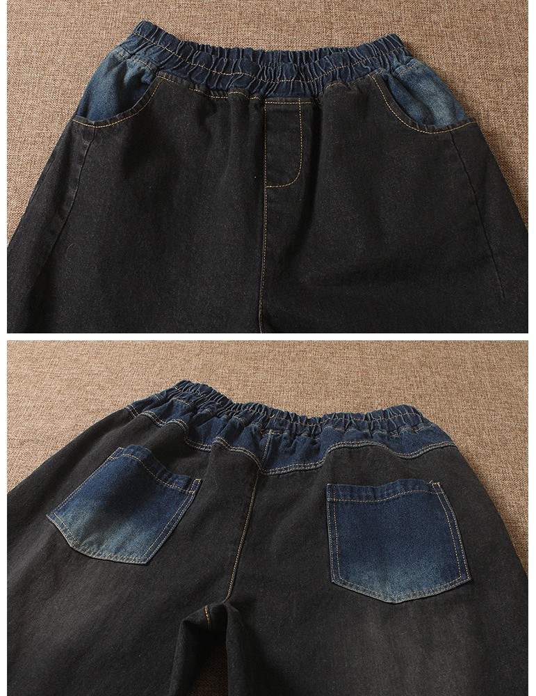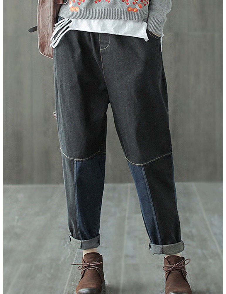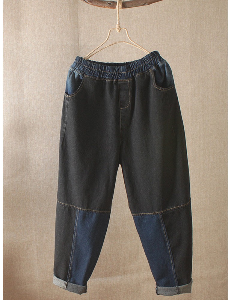 Women Vintage Patchwork Elastic Waist Harem Jeans With Pockets