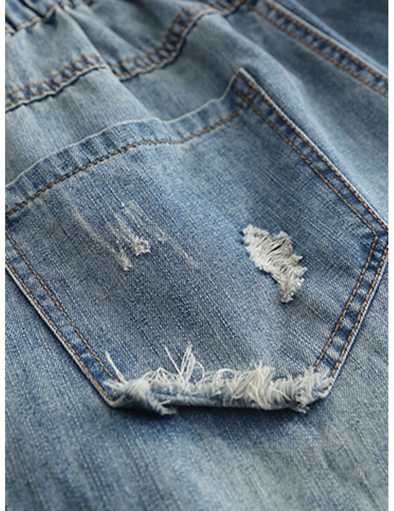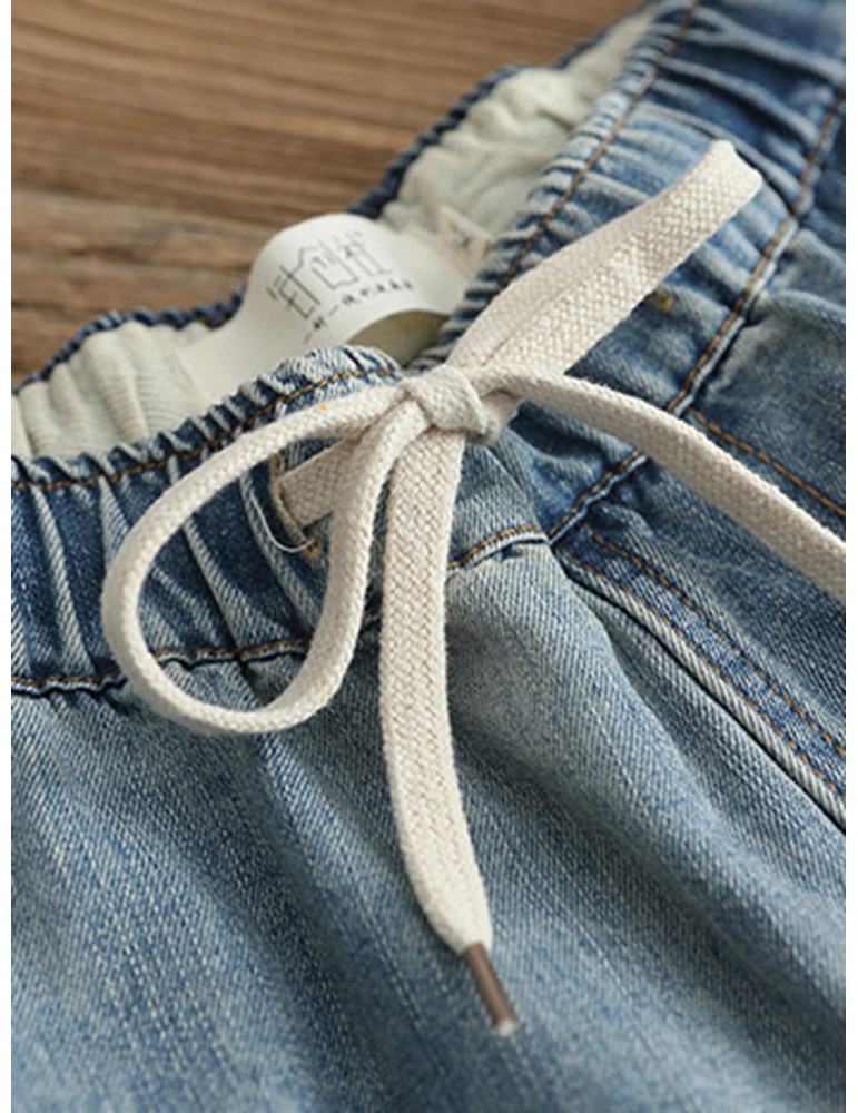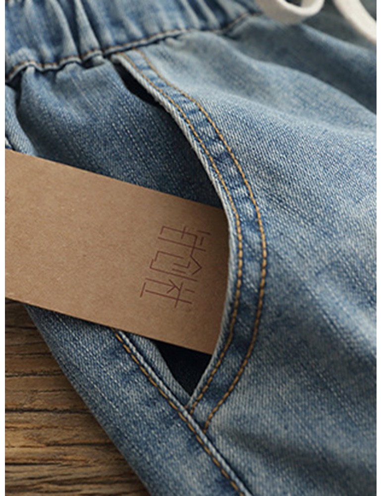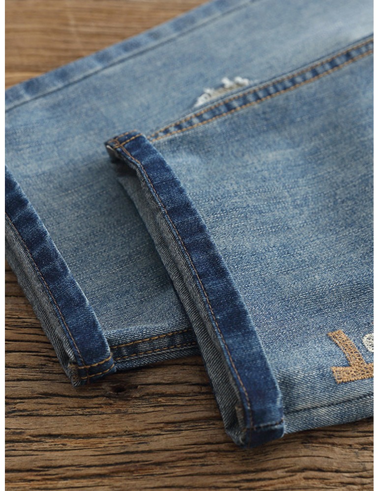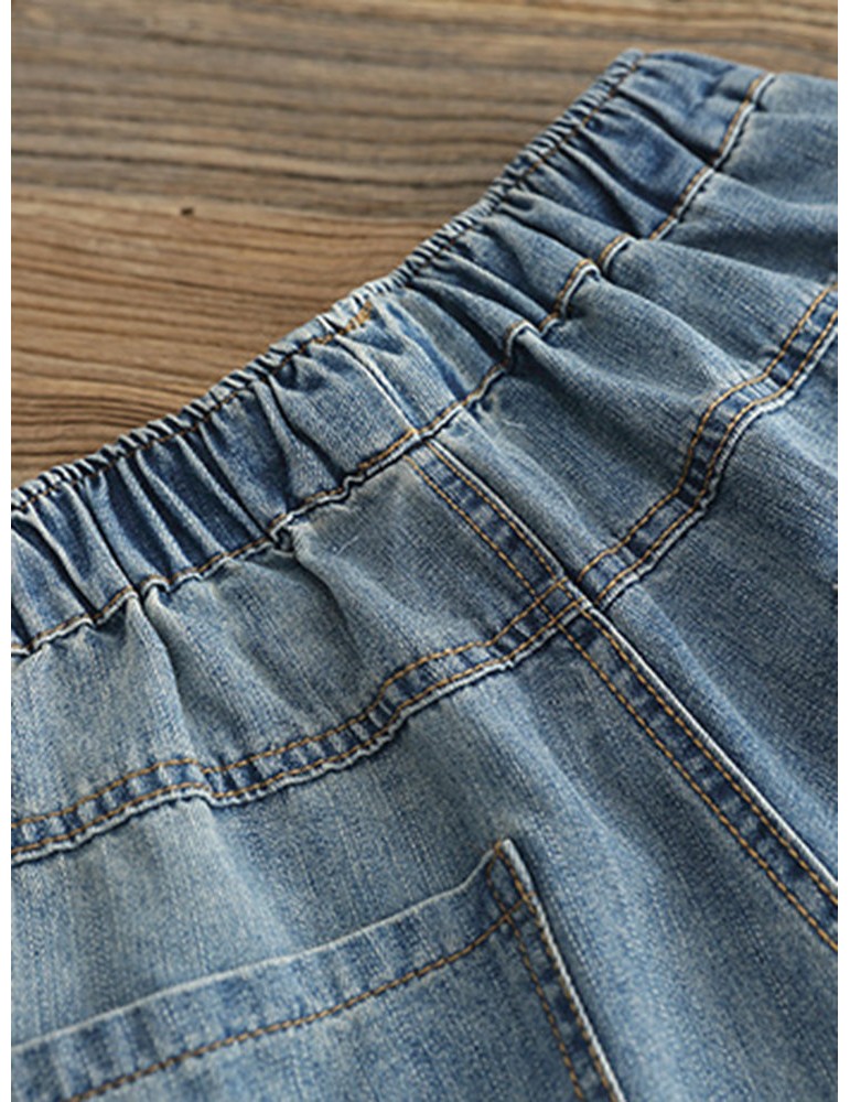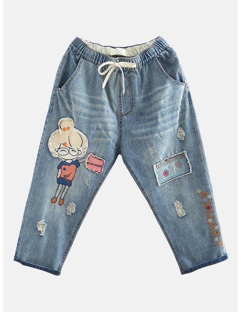Cartoon Patch Embroidery Elastic Waist Casual Jeans