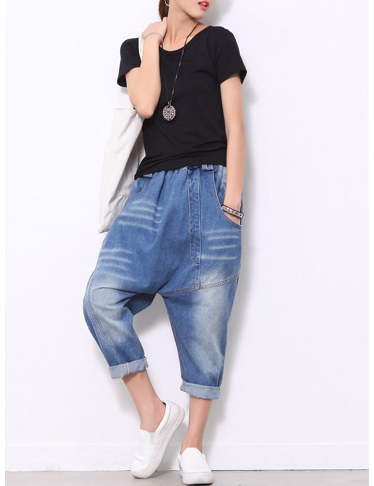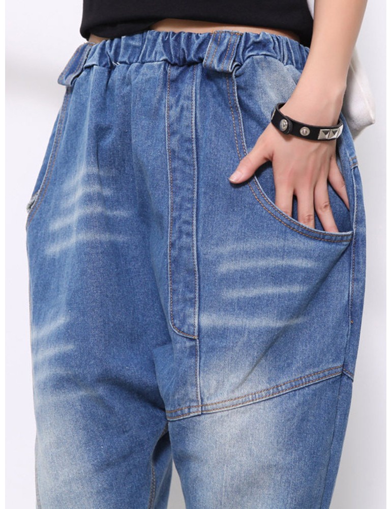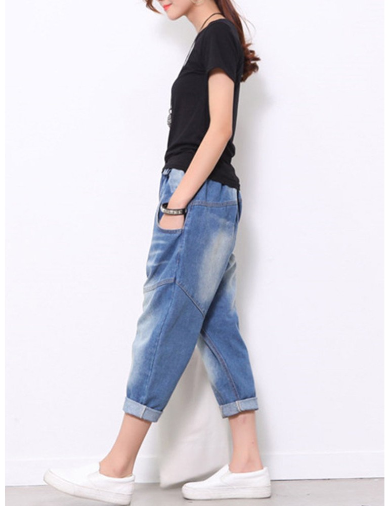 Elastic Waist Solid Color Casual Harem Jeans For Women