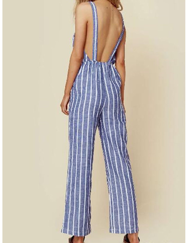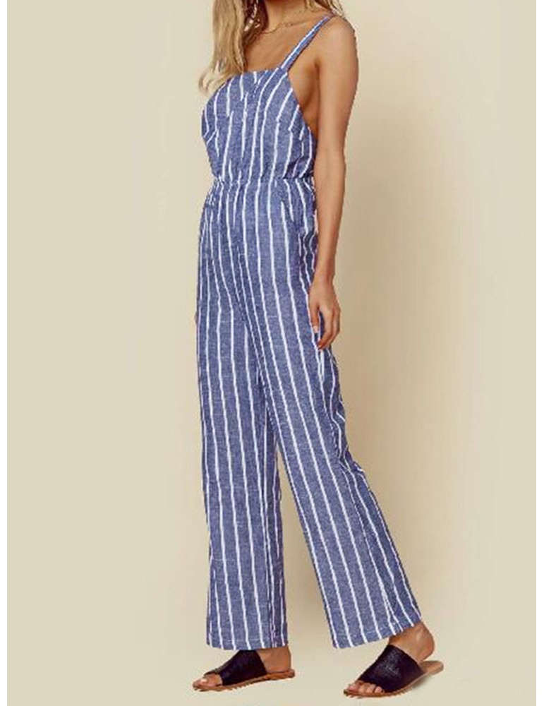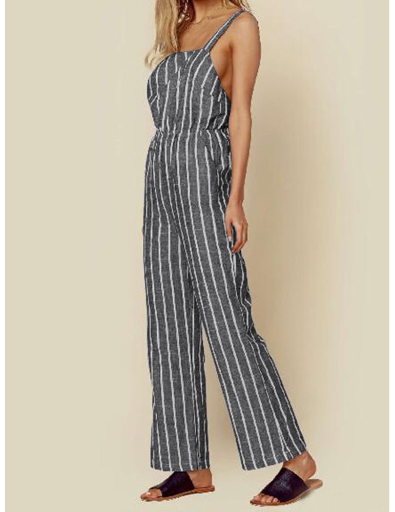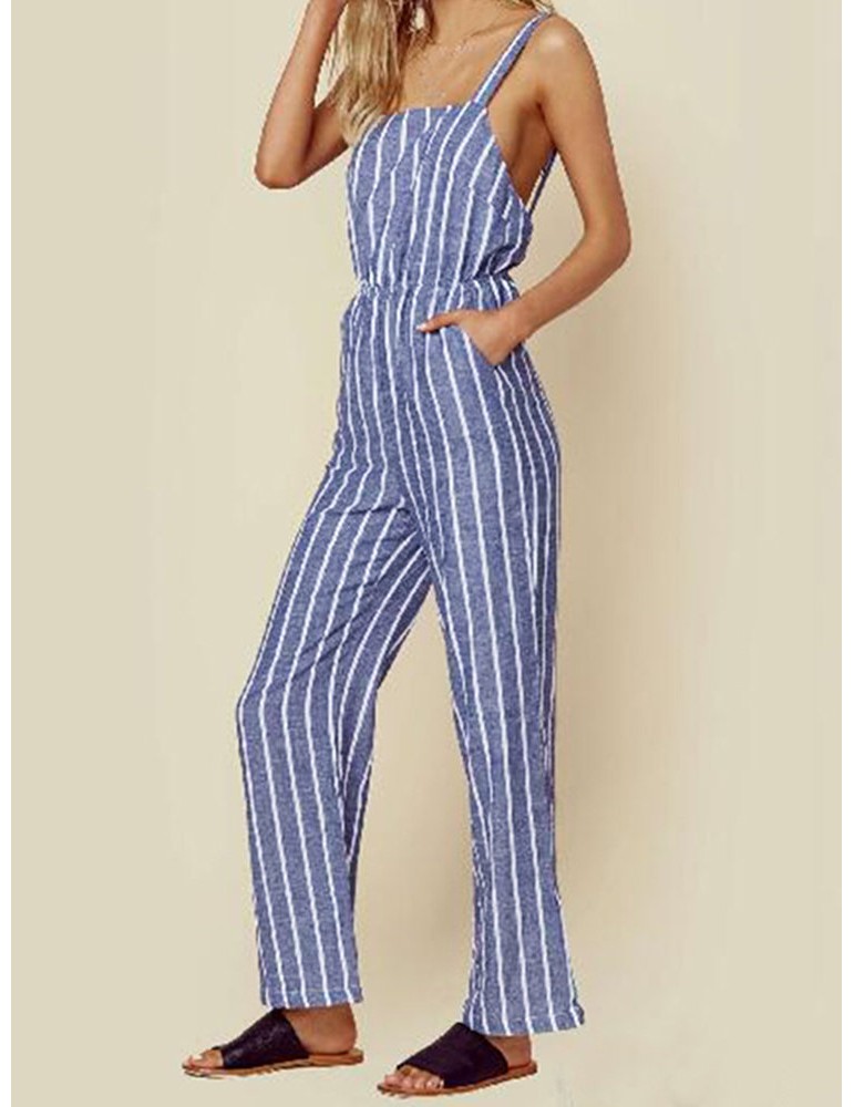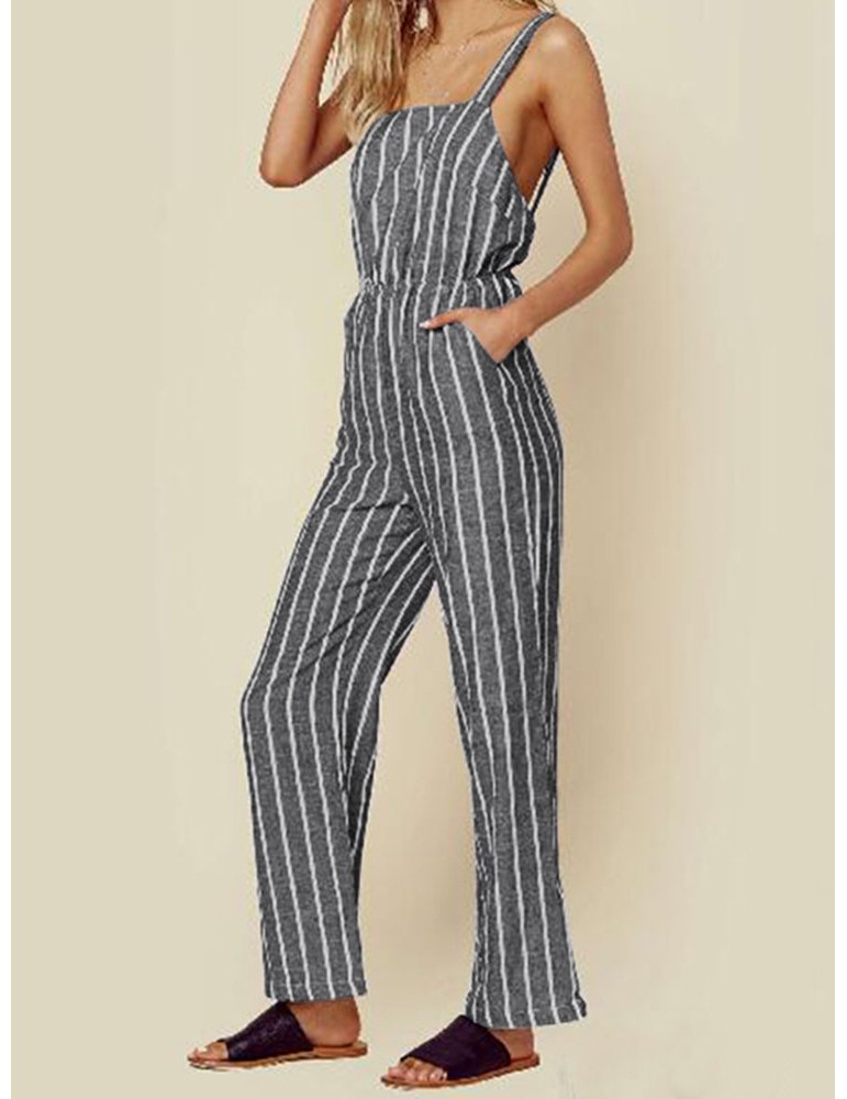 Casual Striped Straps Jumpsuit With Pockets