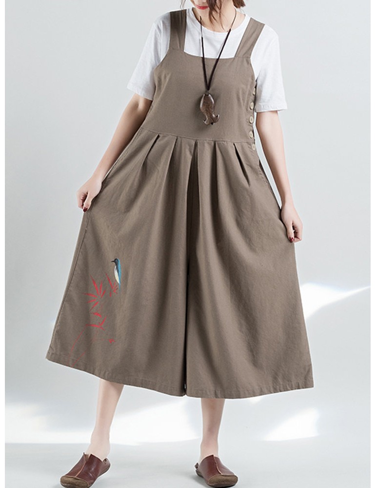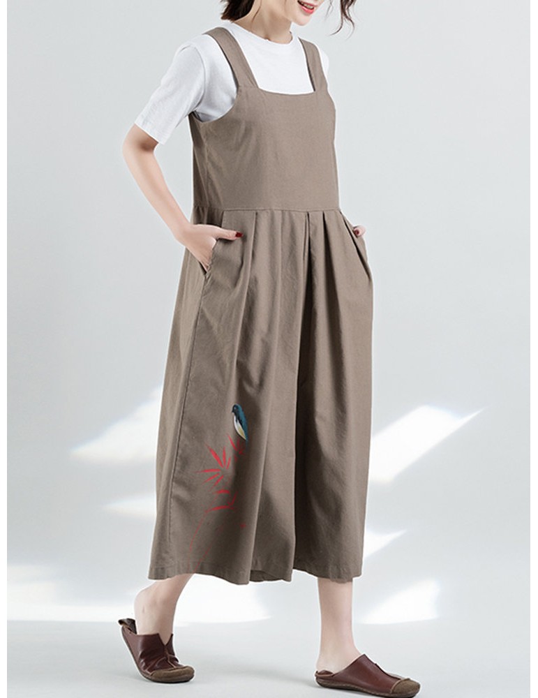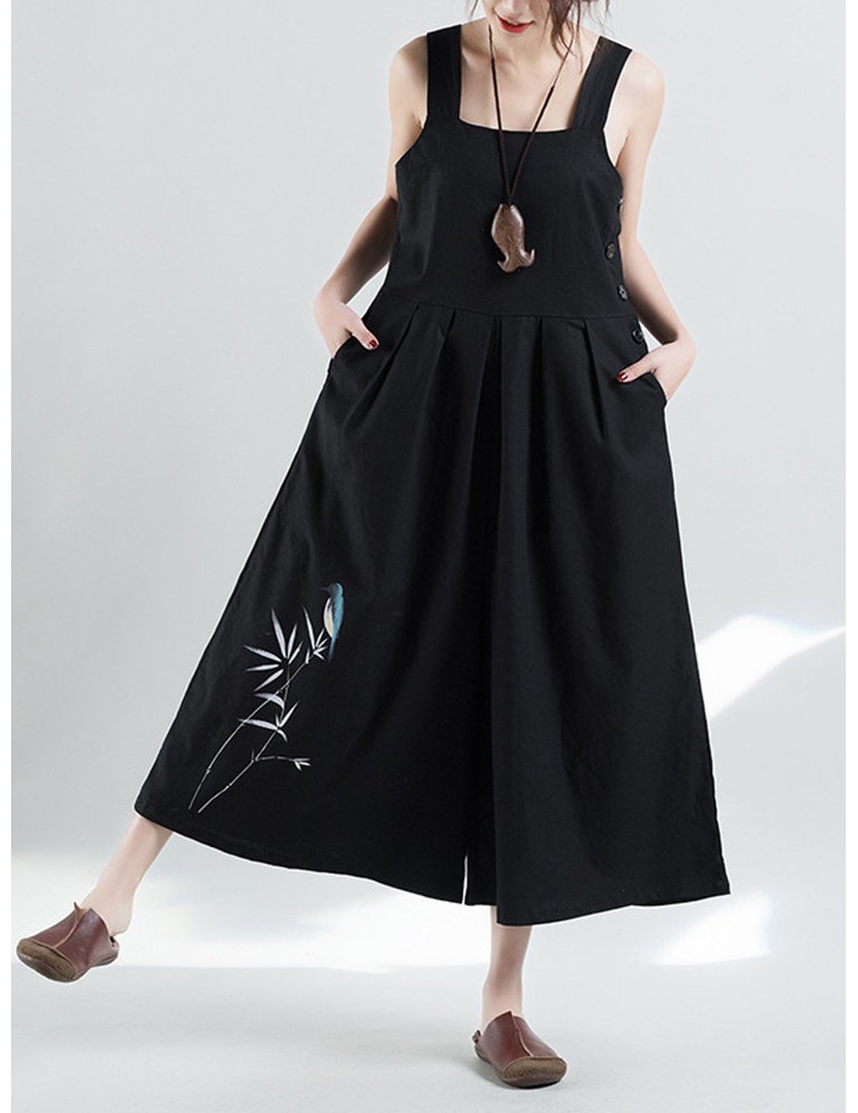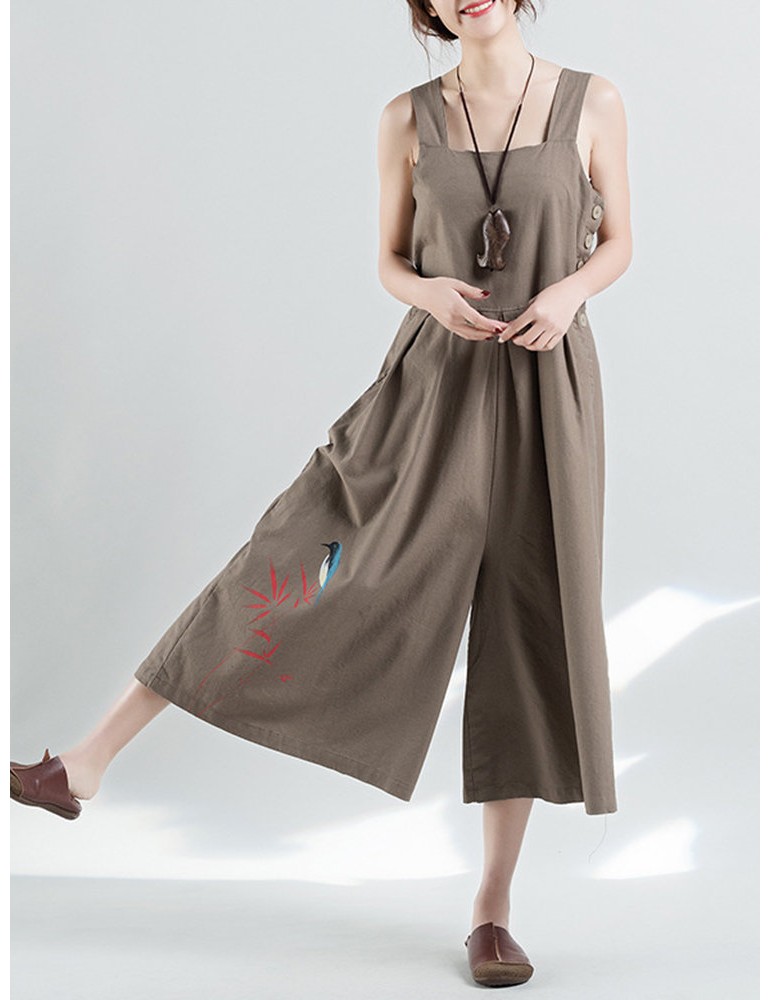 Embroidery Sleeveless Overall Wide Leg Jumpsuit For Women