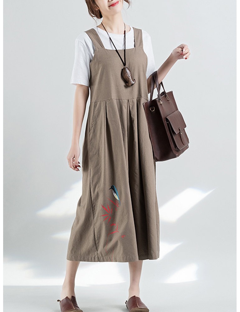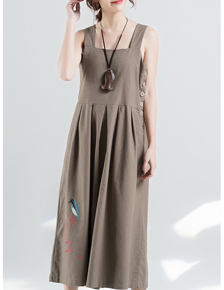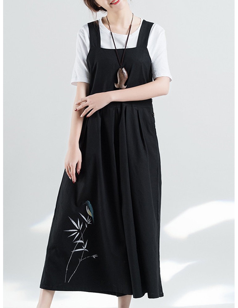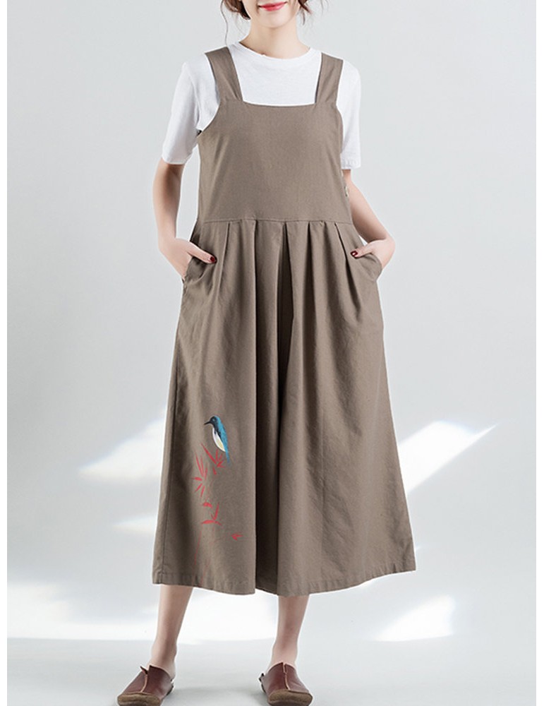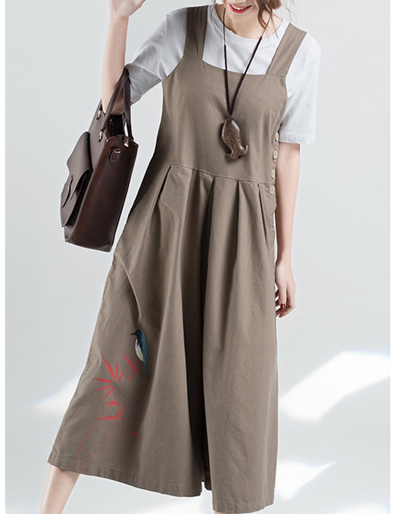 Embroidery Sleeveless Overall Wide Leg Jumpsuit For Women