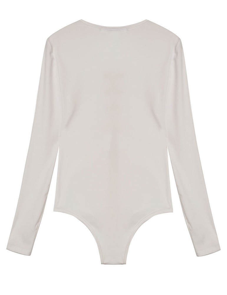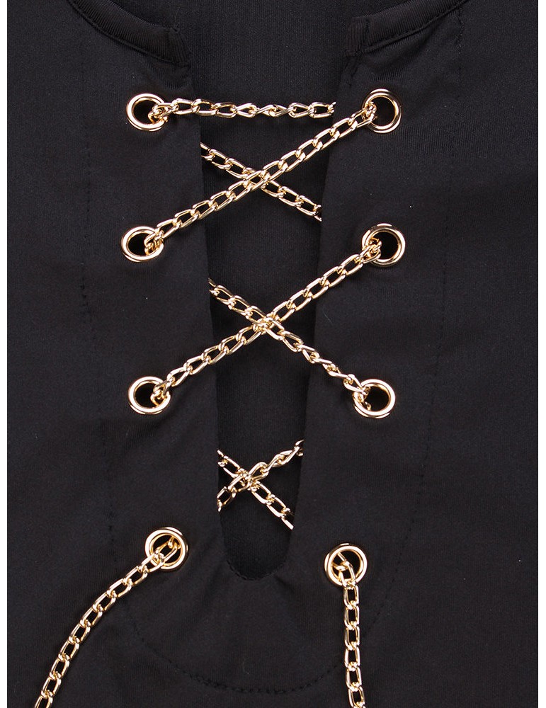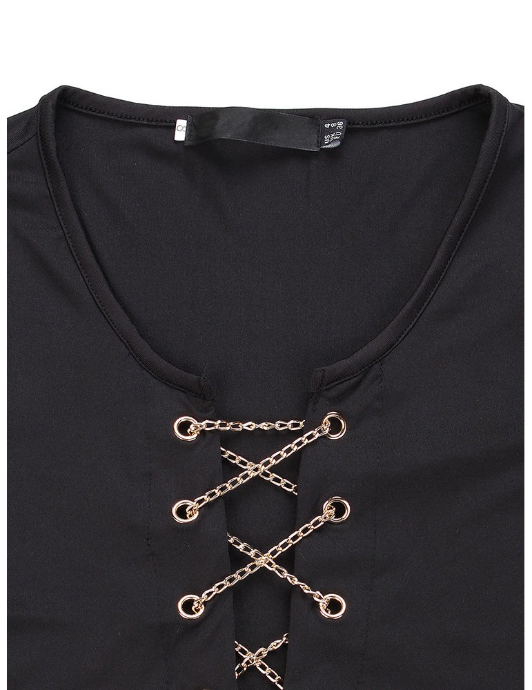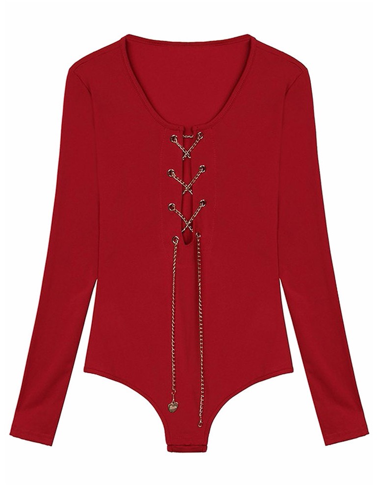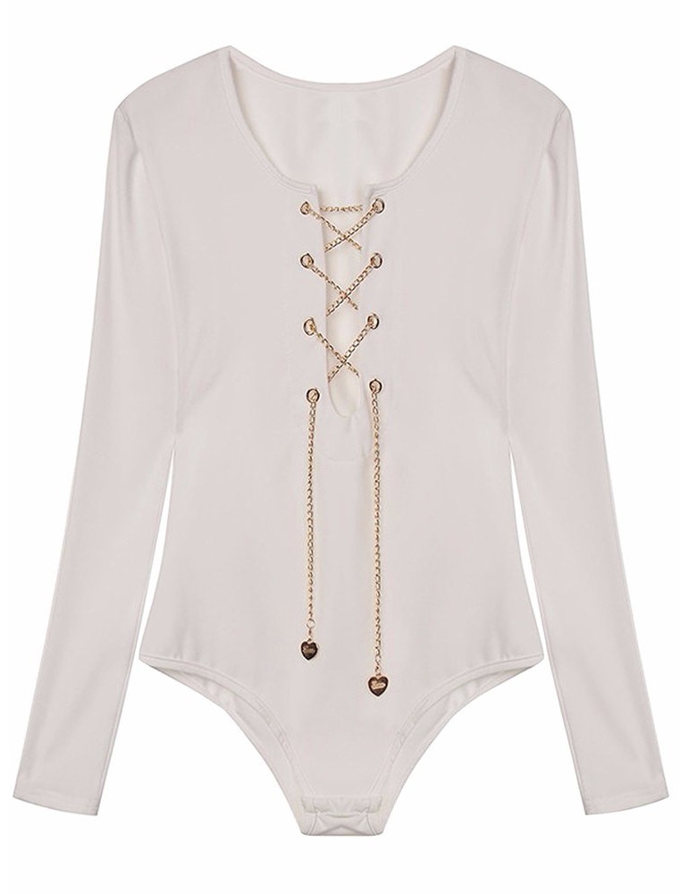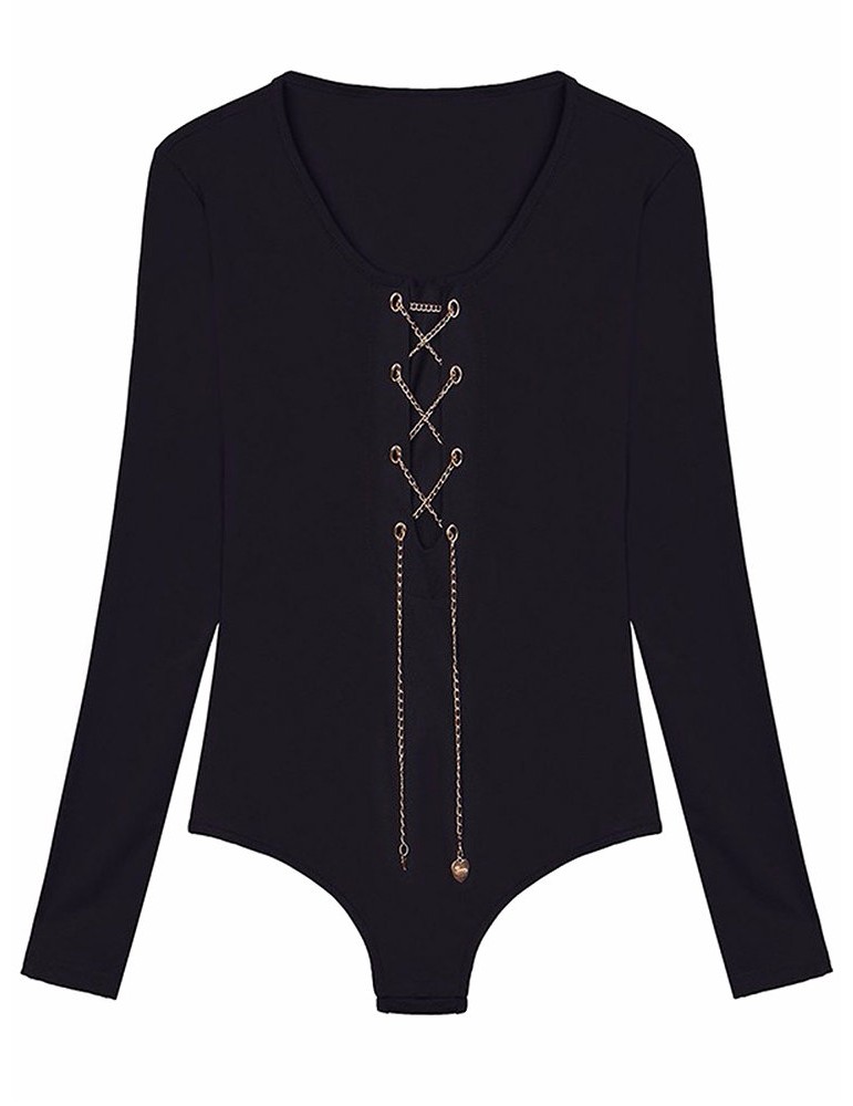Metal Chain Lace Up Long Sleeve Sexy Women Short Jumpsuit