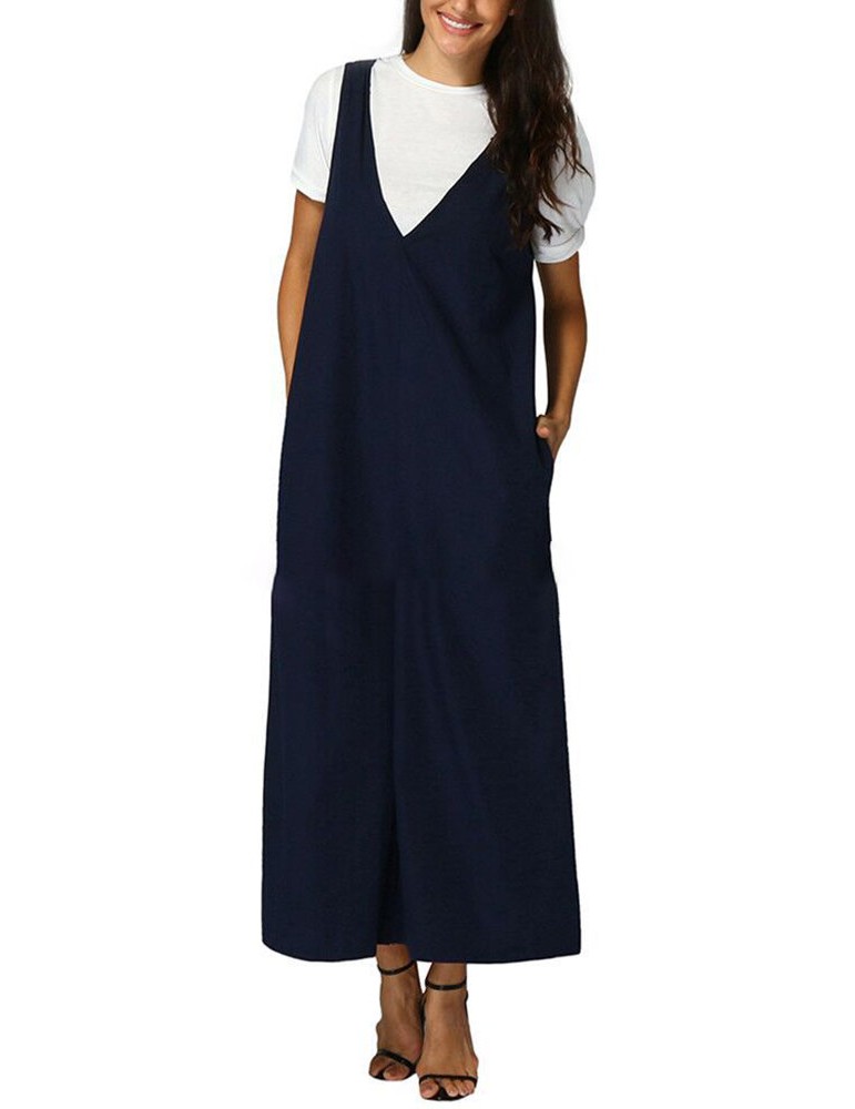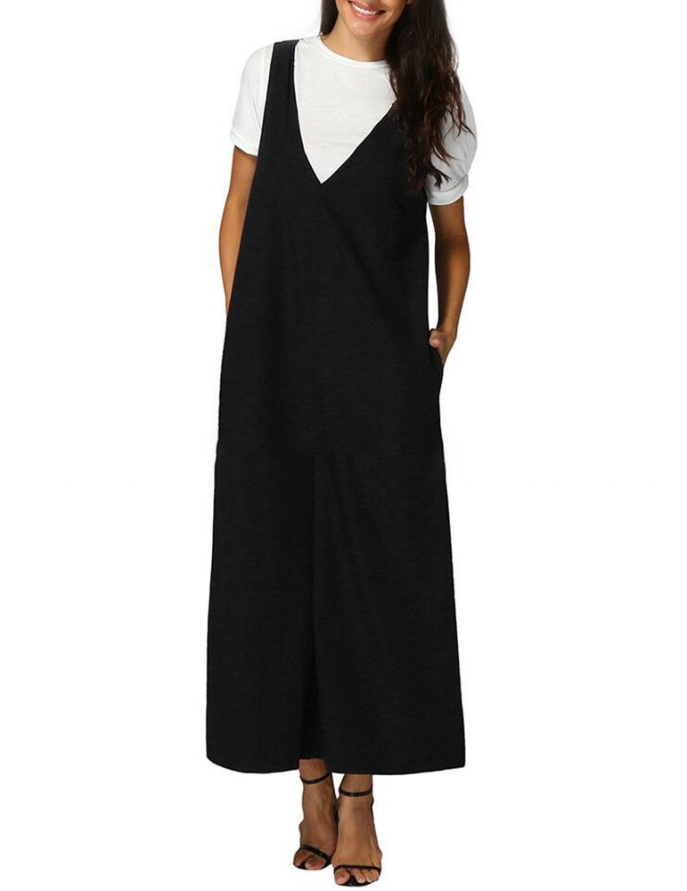 V-neck Straps Overhead Jumpsuit With Loose Wide Leg