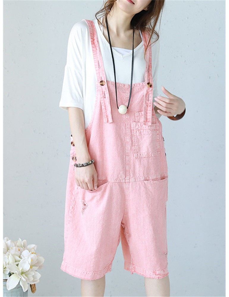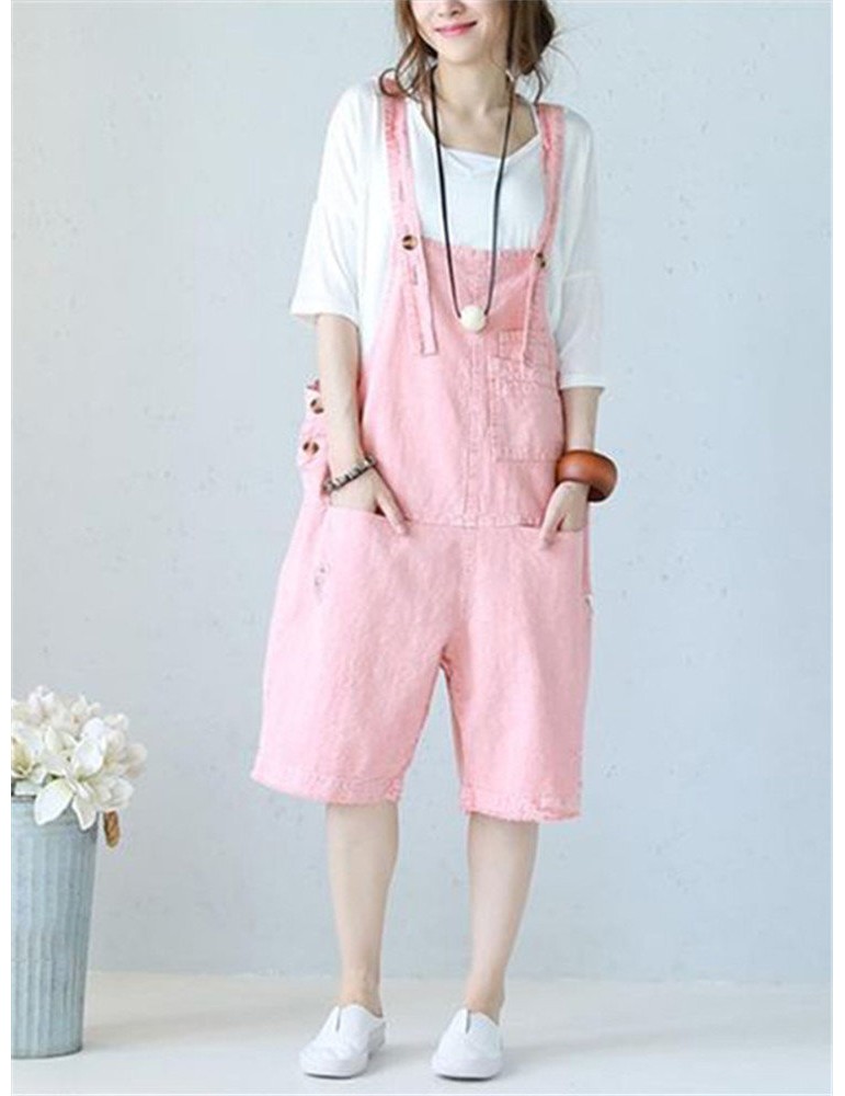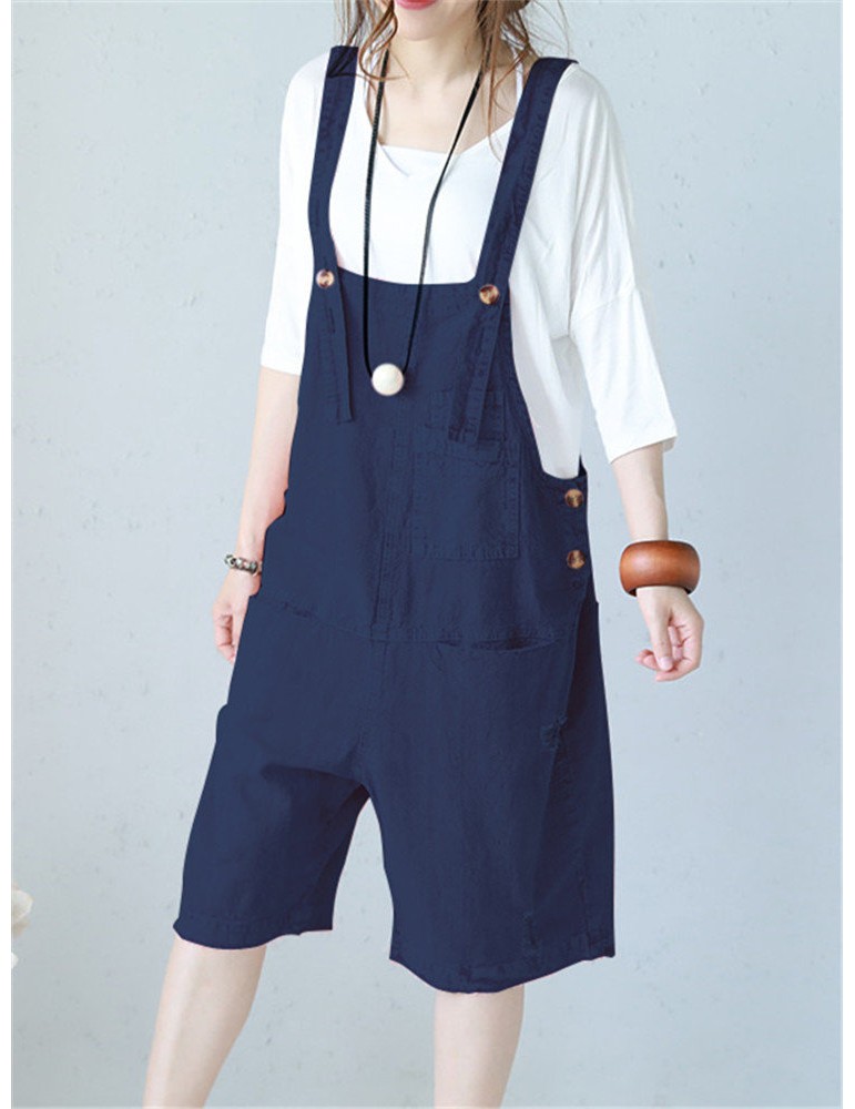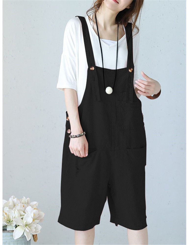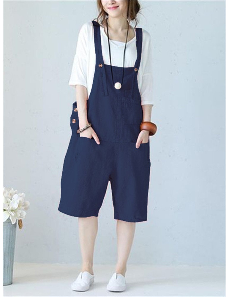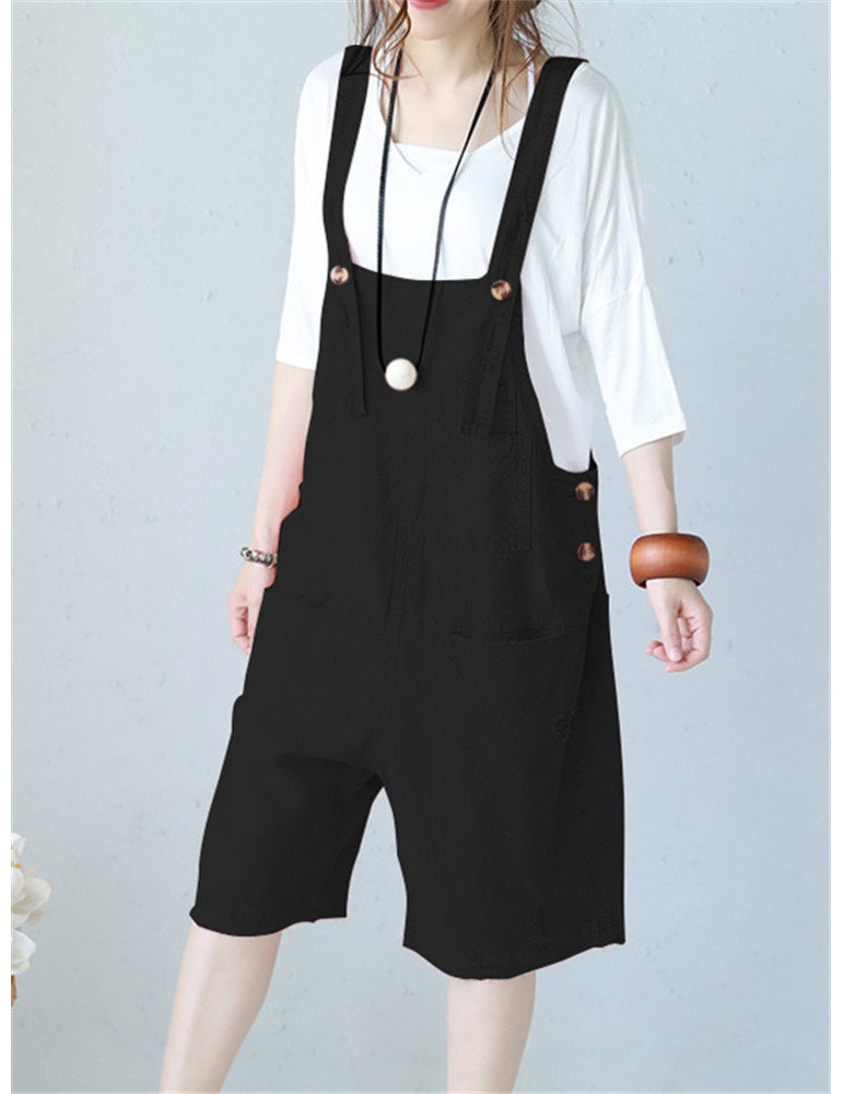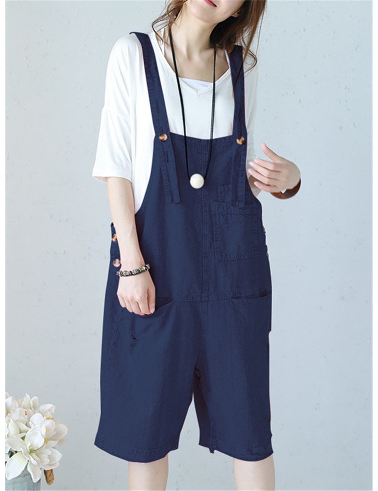 Sleeveless Button Solid Color Pockets Jumpsuit