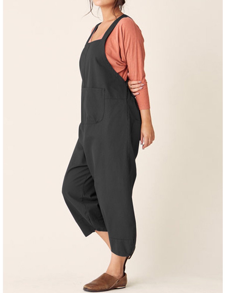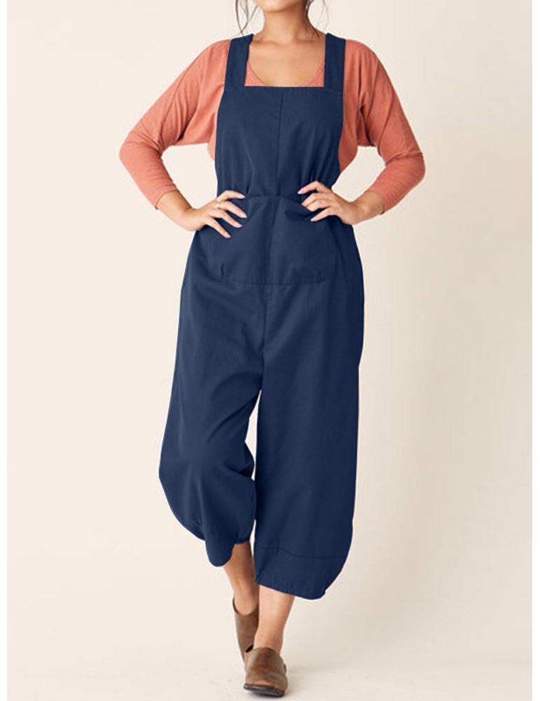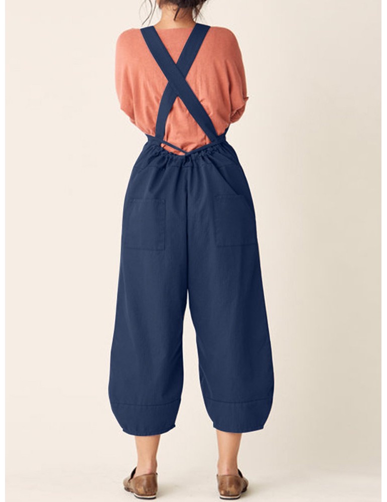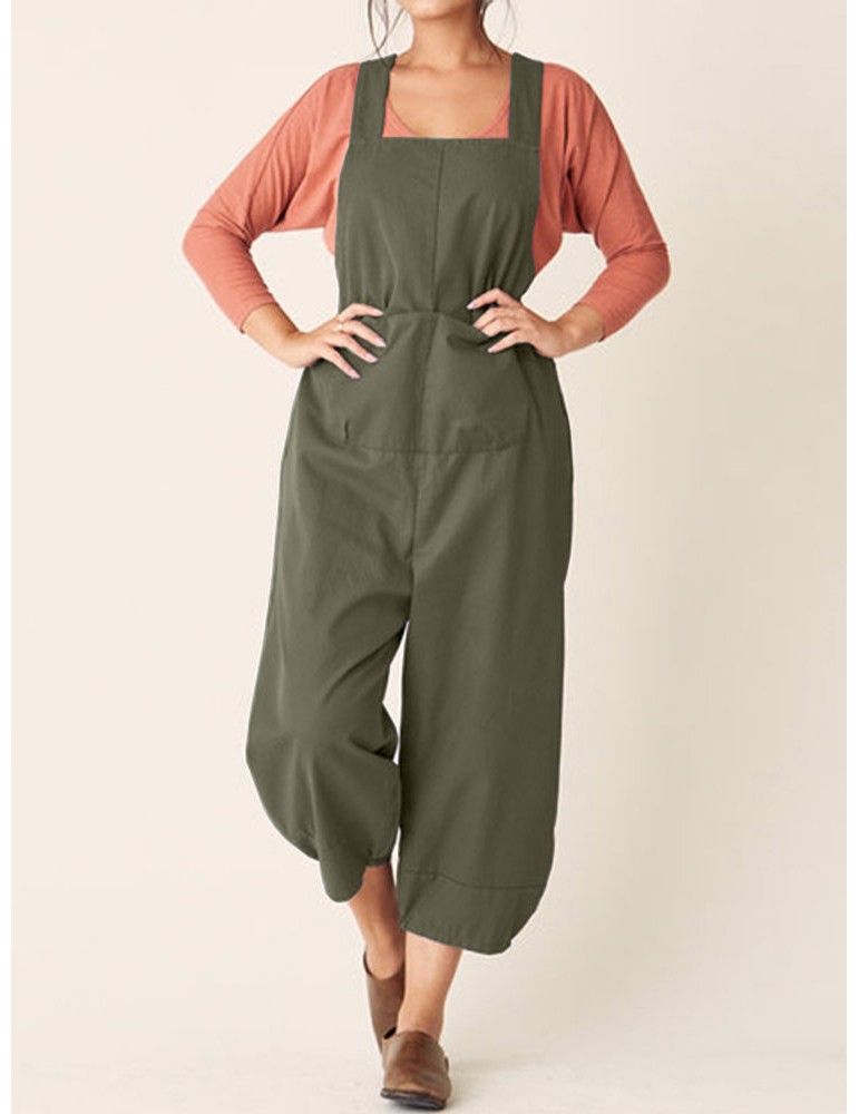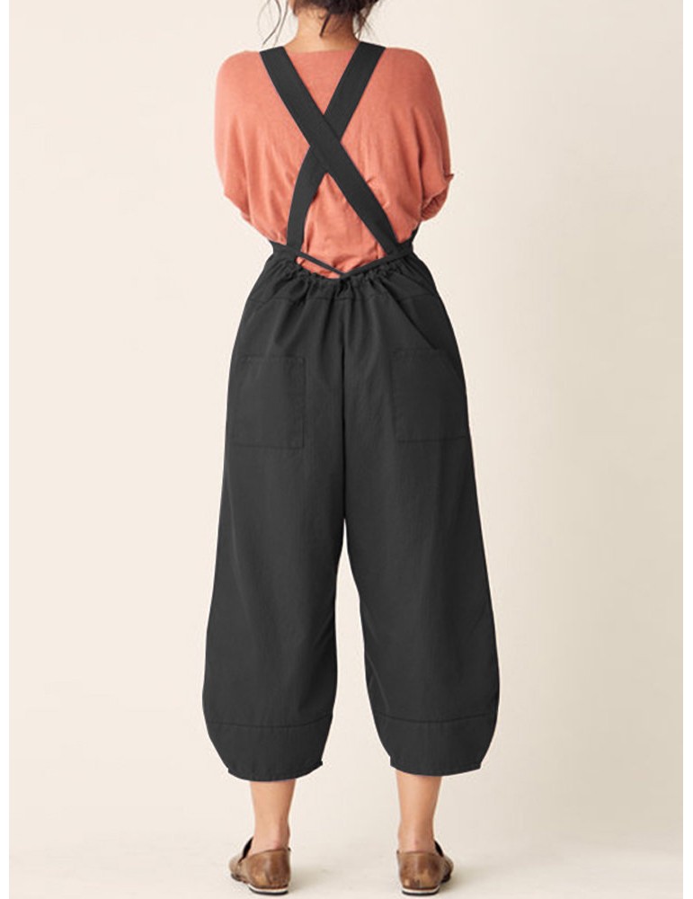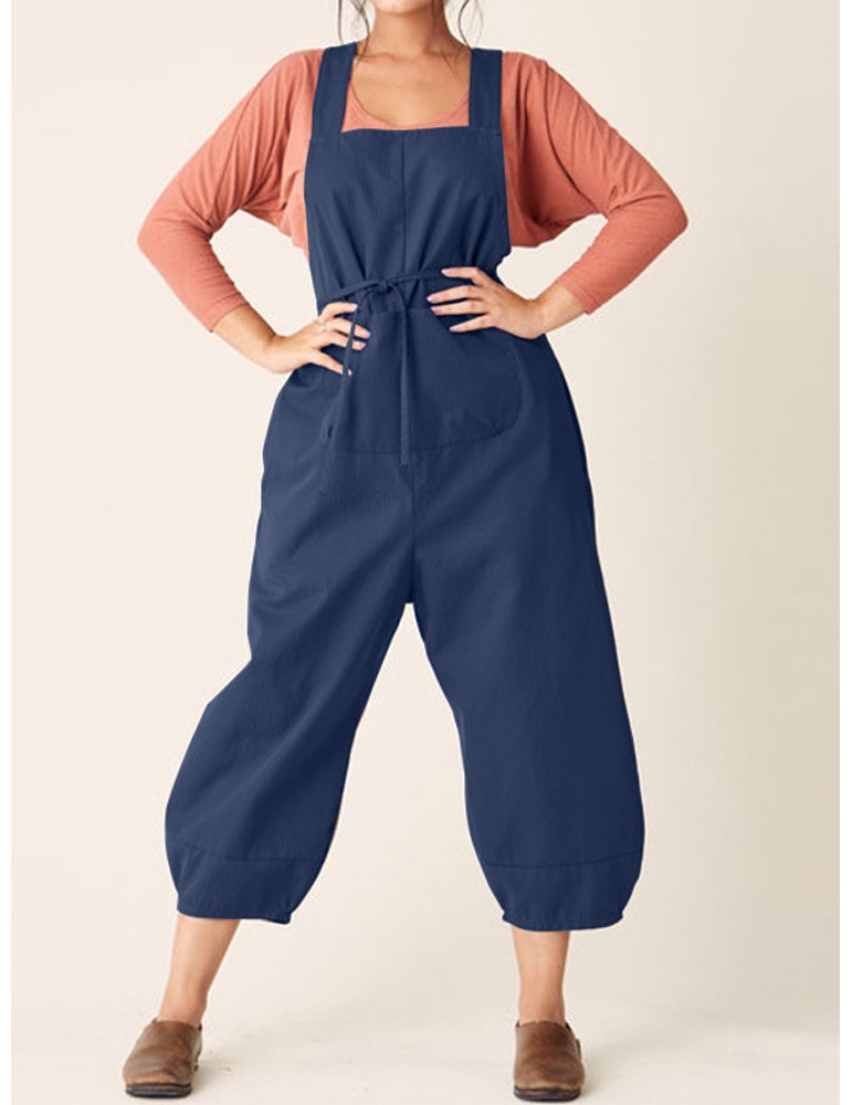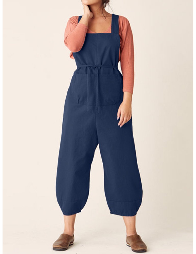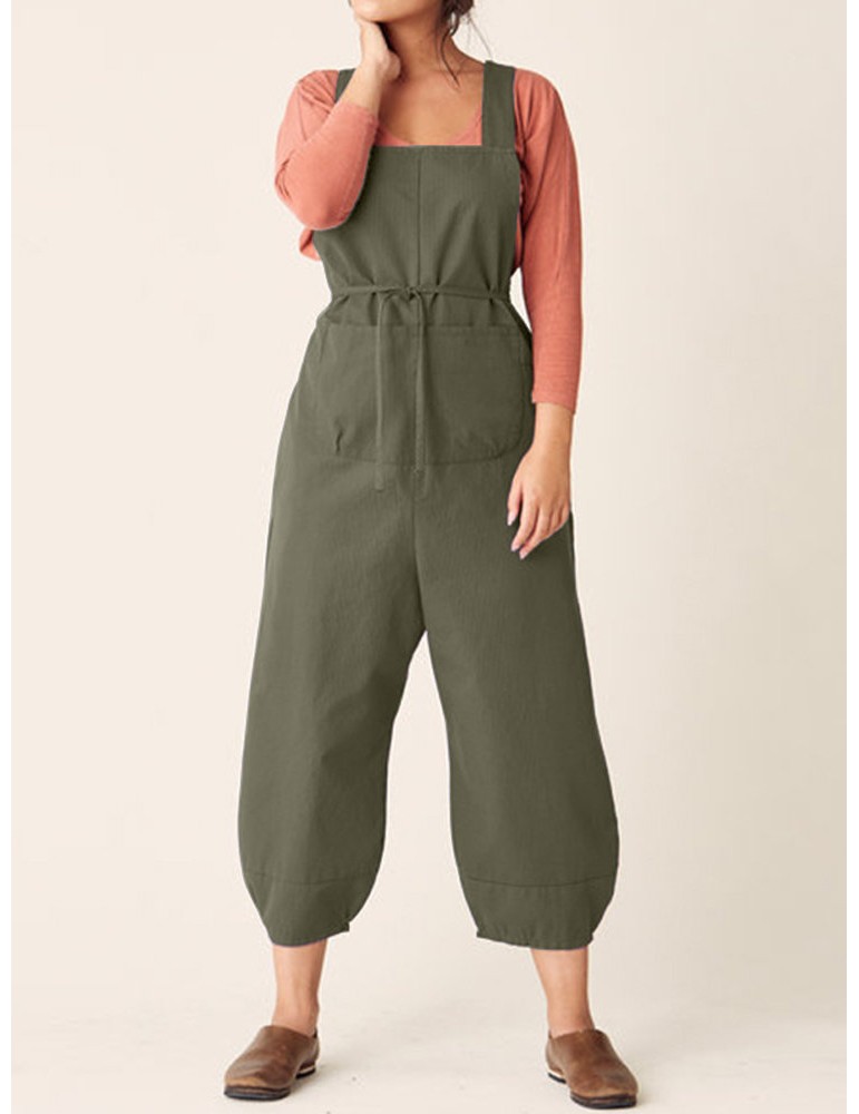 Bib Cargo Pocket Drawstring Overalls Jumpsuit