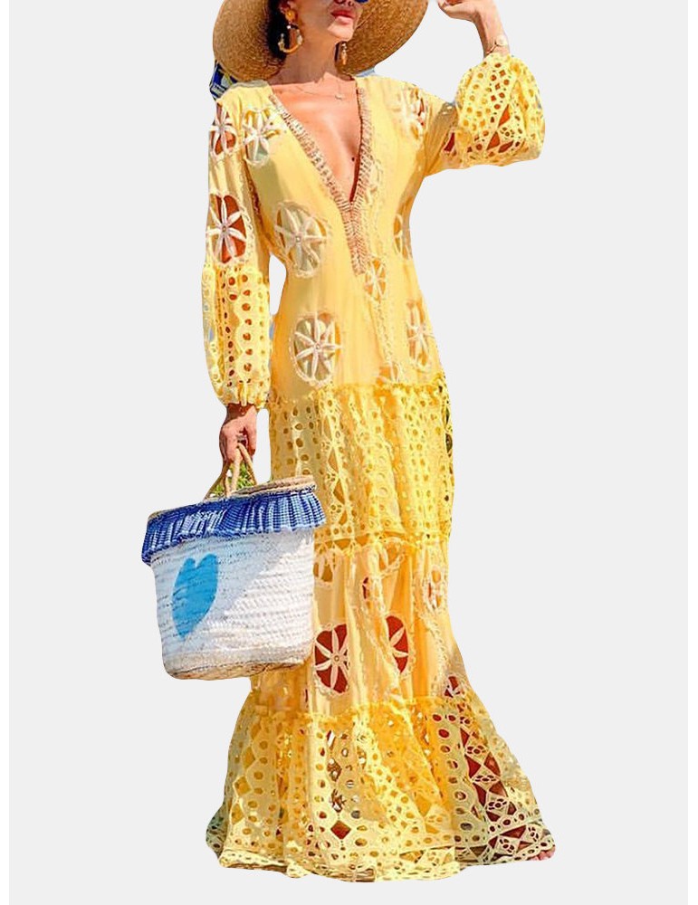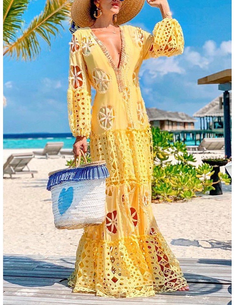 Bohemian Lace Solid Color Elegant Maxi Dress For Women
