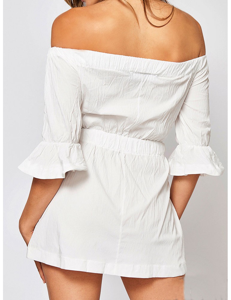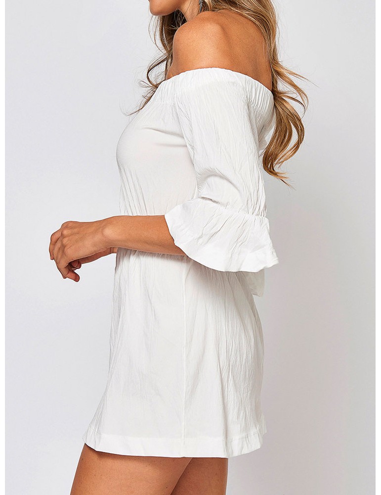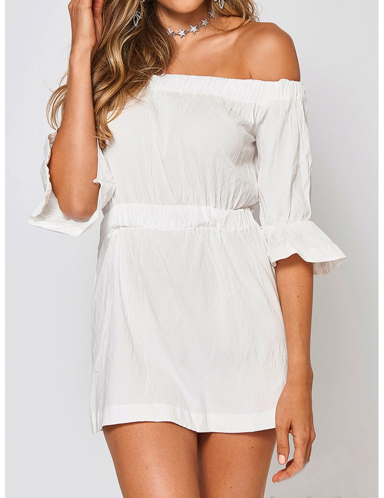Casual Off-shoulder Elastic Waist 3/4 Sleeve Women Mini Dress