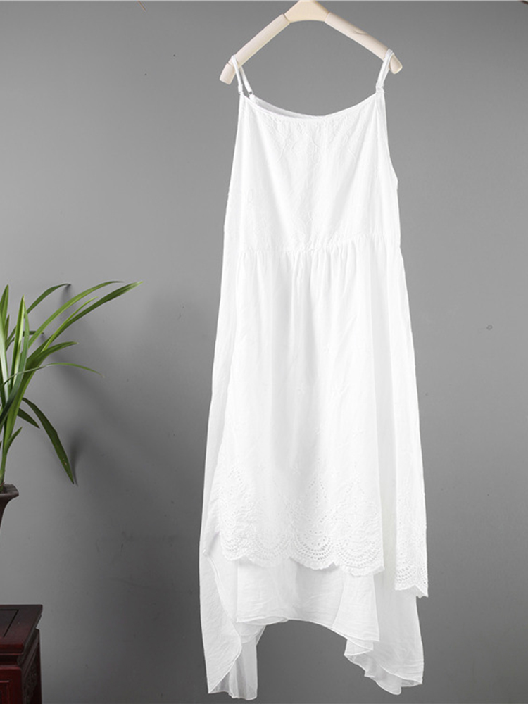 Sleeveless Hollow Out Irregular Hem Embroidery Spaghetti Straps Dresses