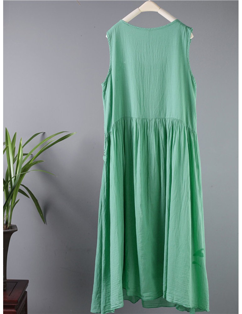 Casual Hook Flower Hollow Out Cotton Sleeveless Tank Dresses