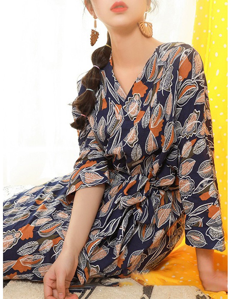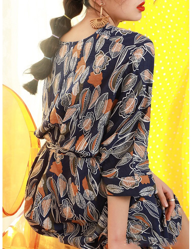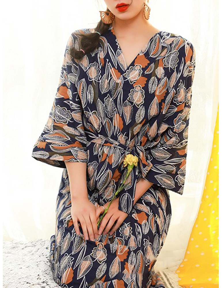 Boho Natural Print 3/4 Sleeve V Neck Dress