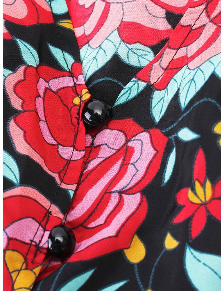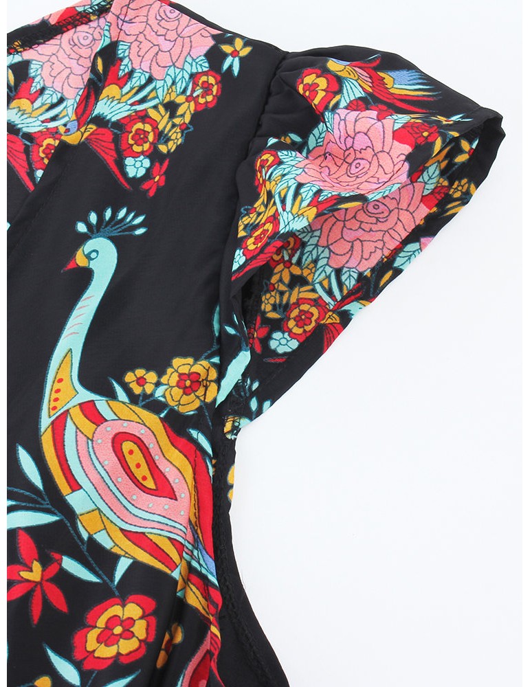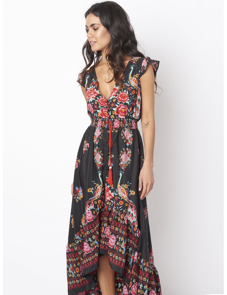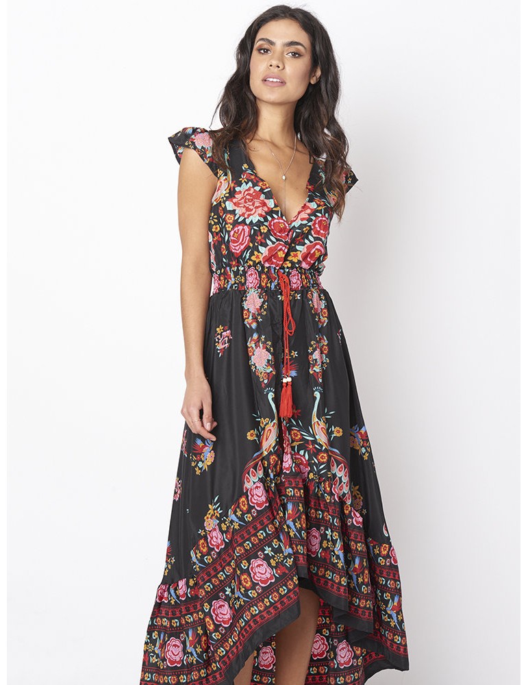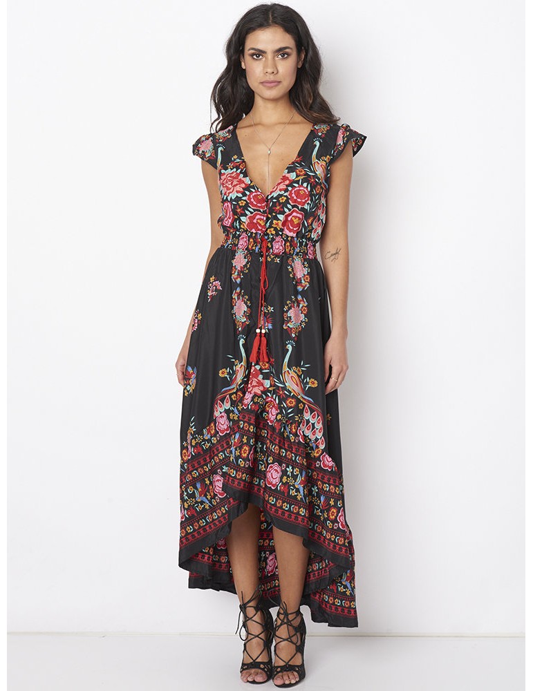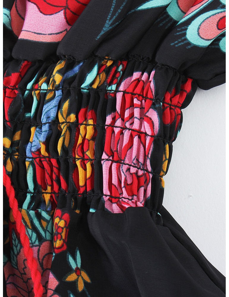 Folk Style Floral Print Bandage V-neck Women Maxi Dress