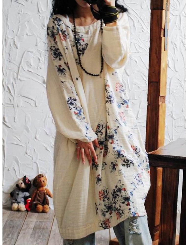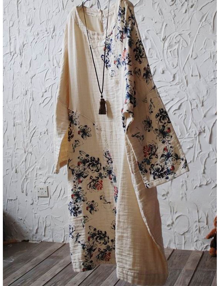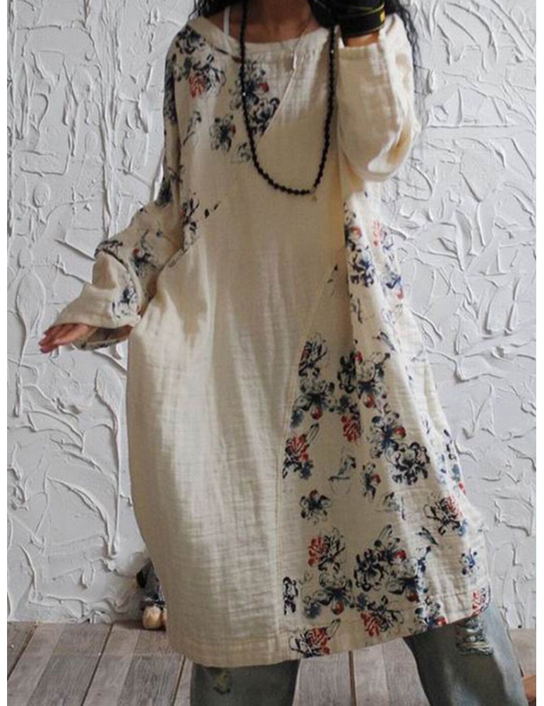 Floral Print Patchwork Long Sleeve Vintage Dress