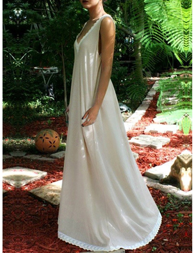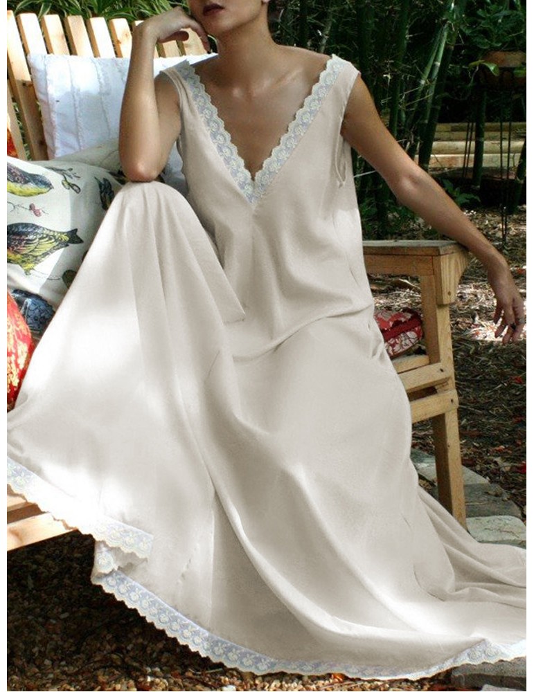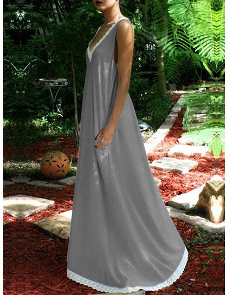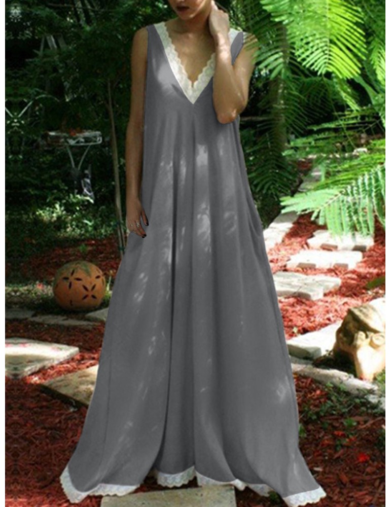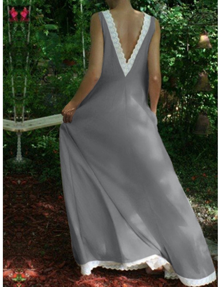 Women Lace Patchwork Sleeveless Vintage Maxi Dress