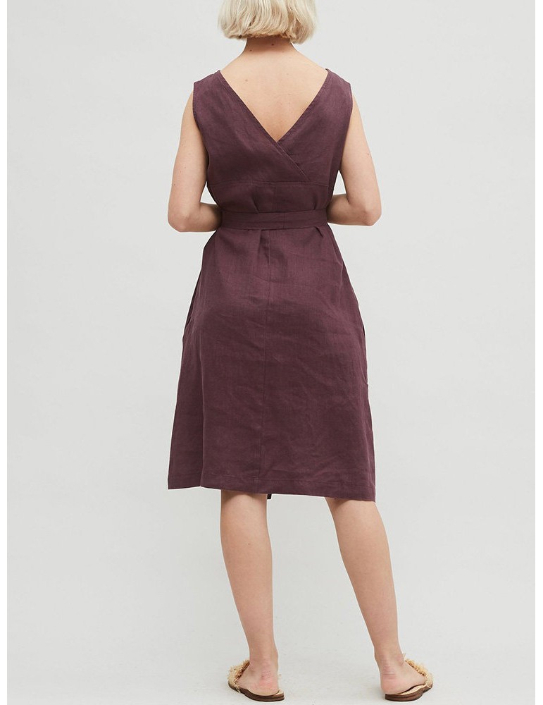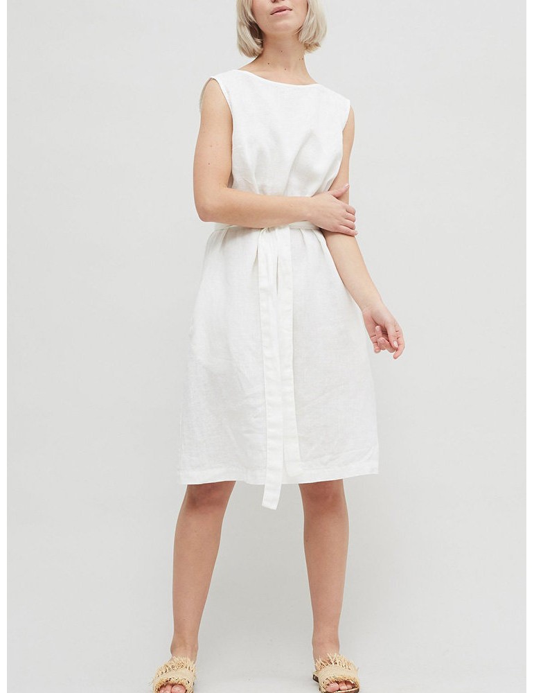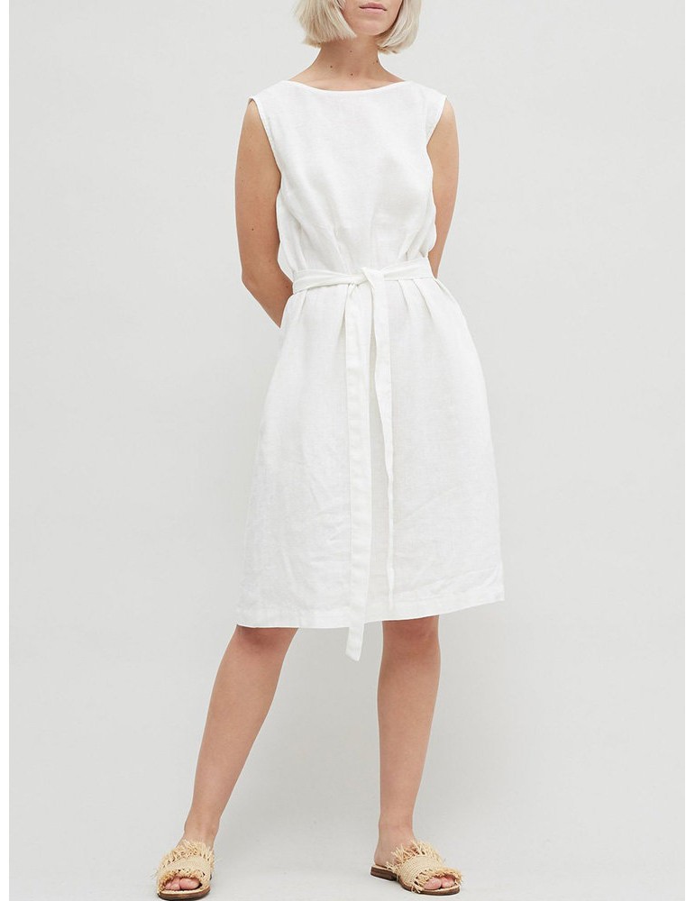 Vintage Solid Color Crew Neck Sleeveless Dress
