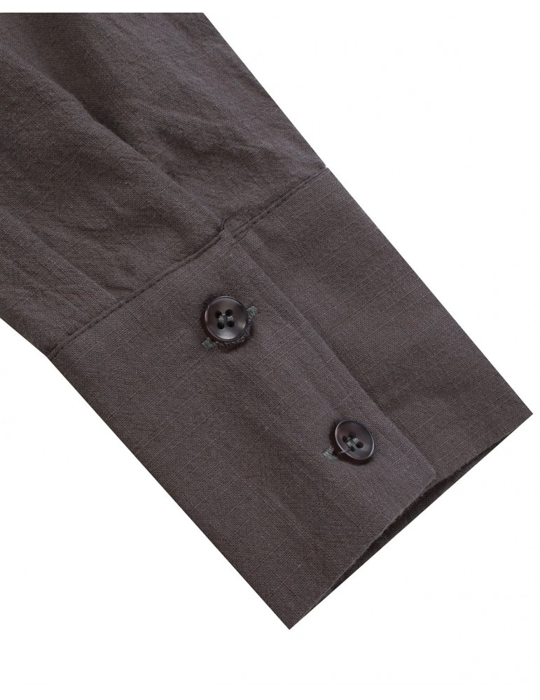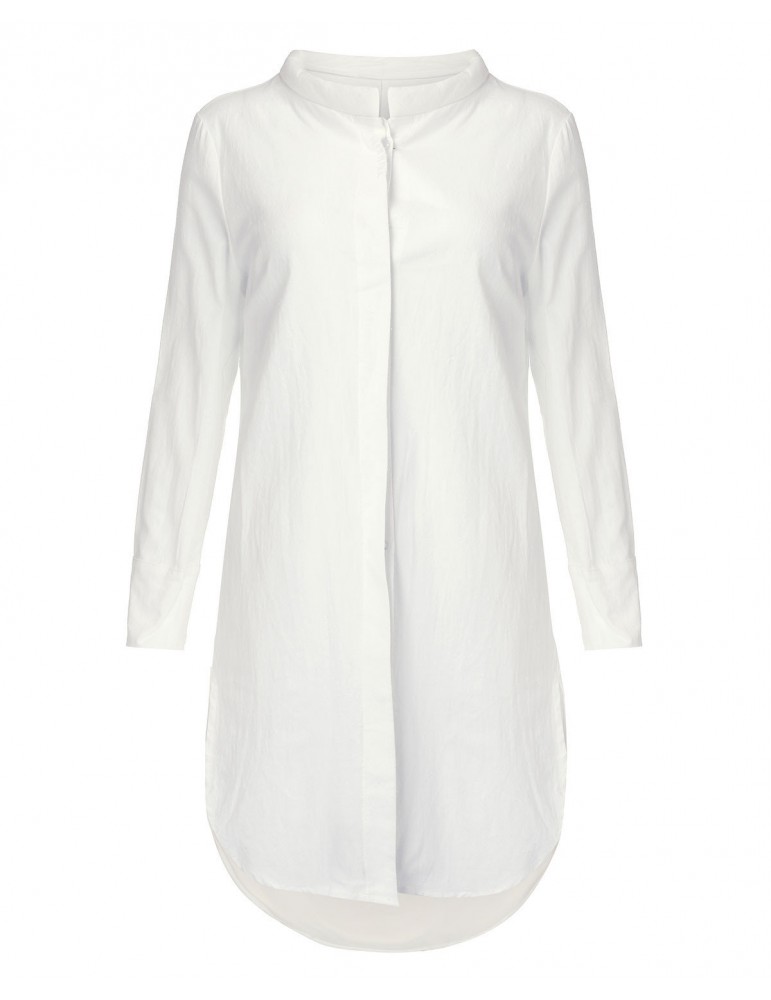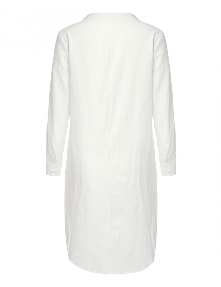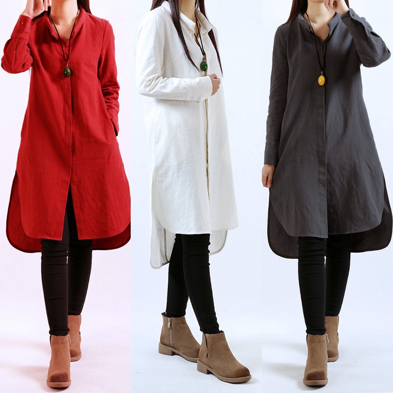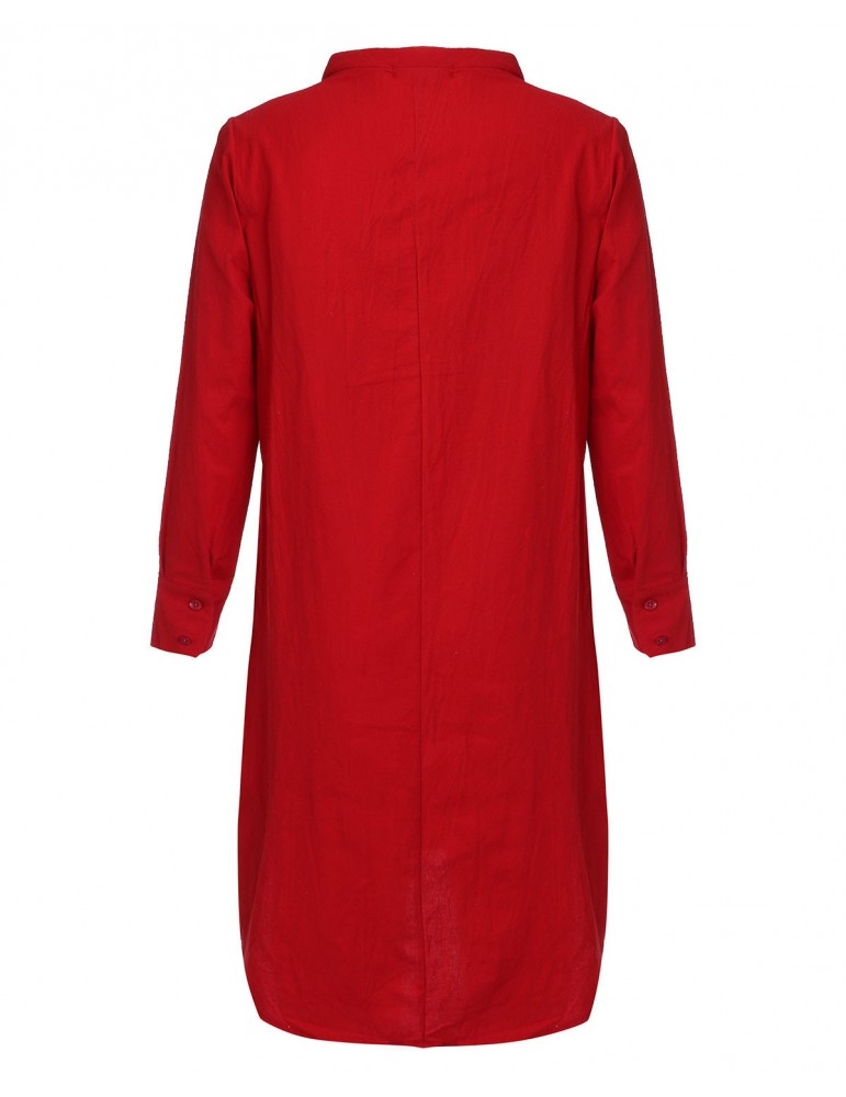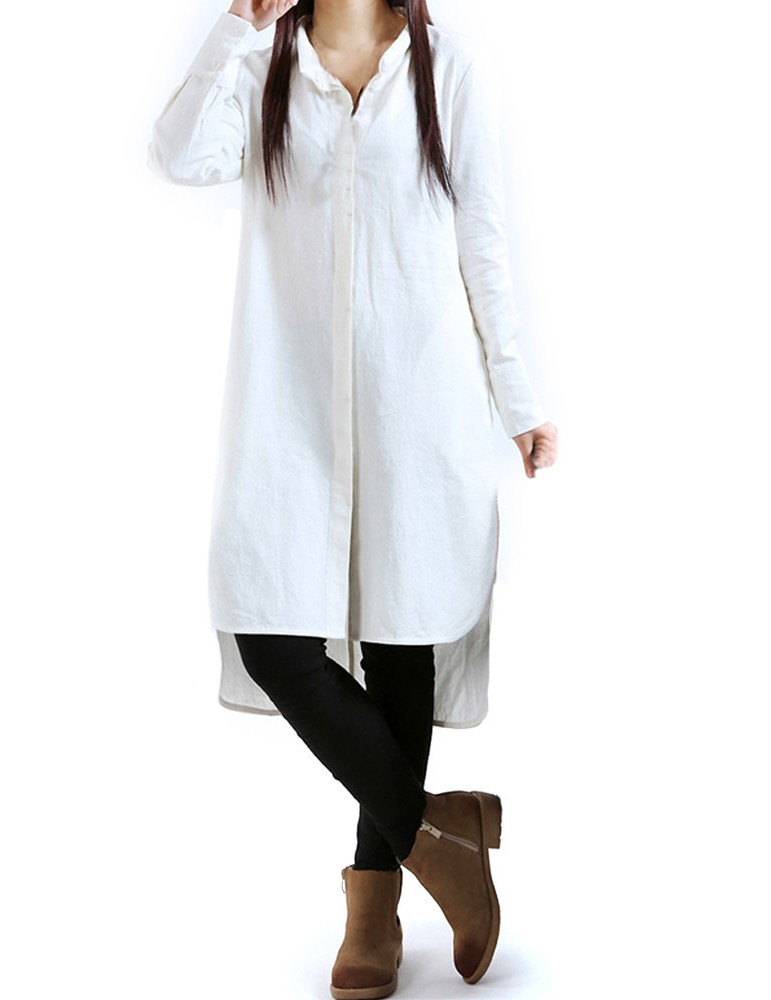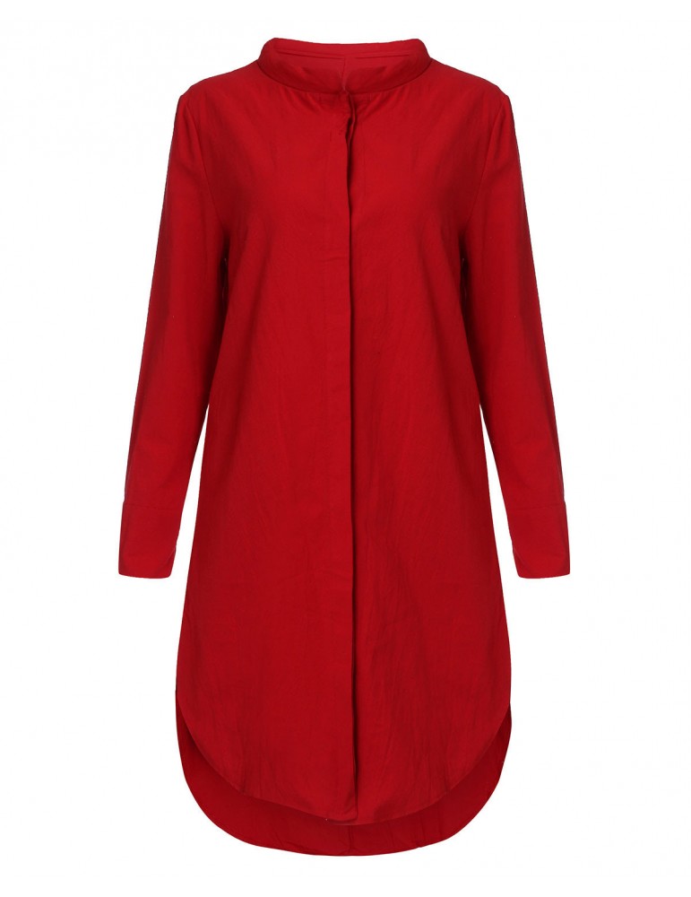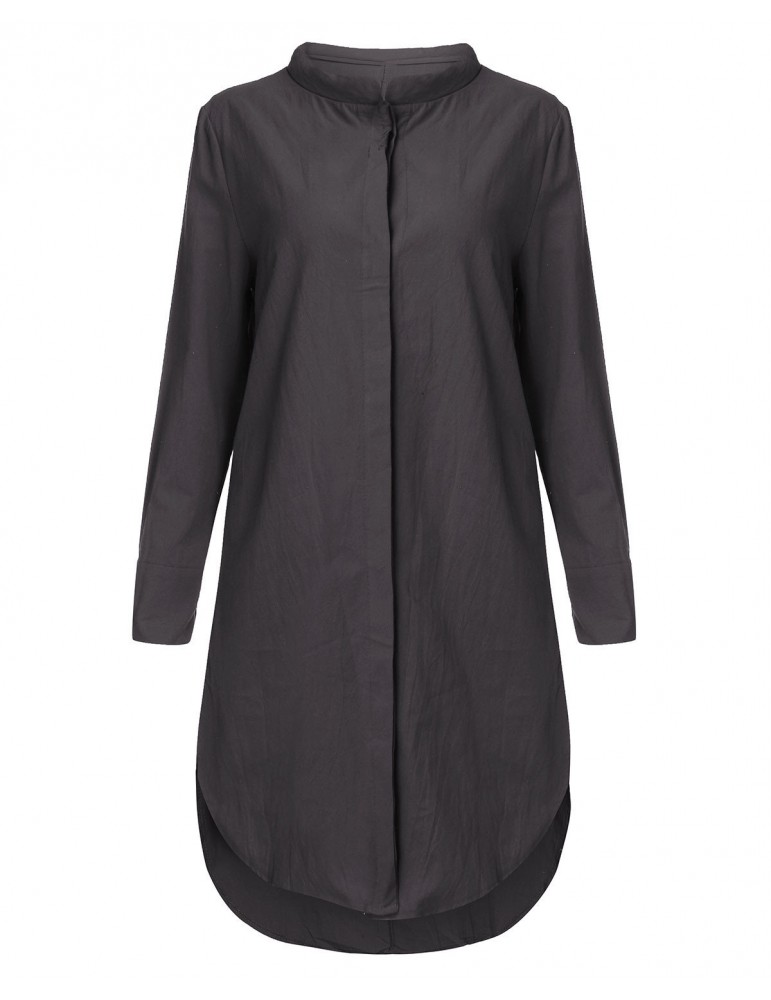 Vintage Loose Split Solid Long Sleeve Stand Collar Shirt Dresses For Women