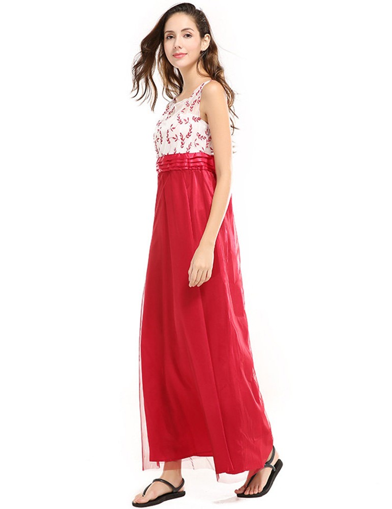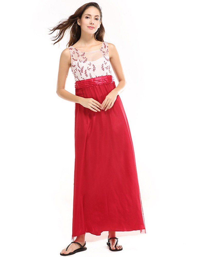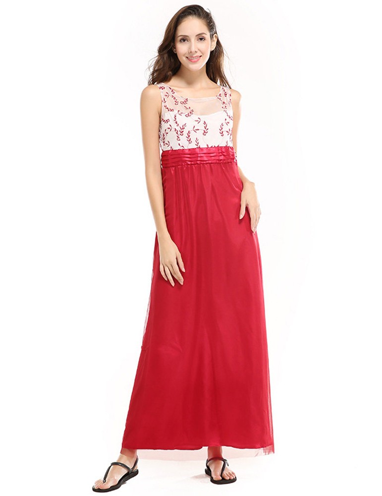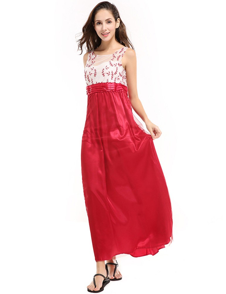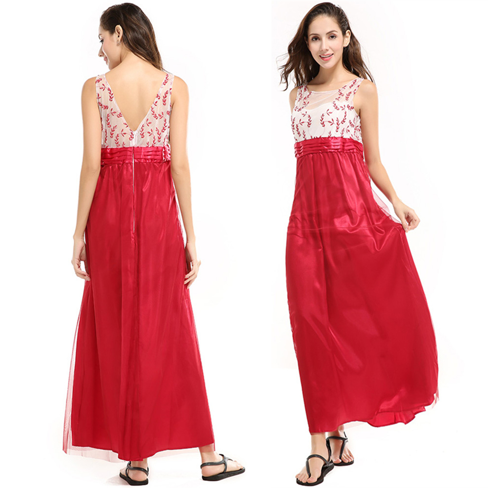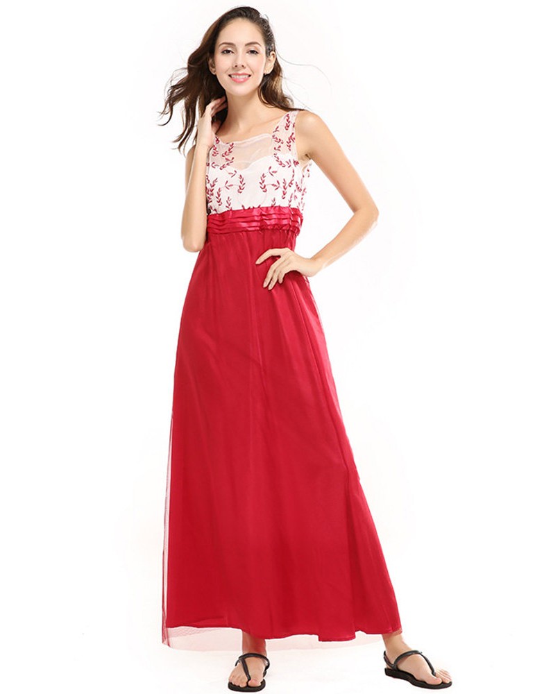Sexy Lace Women Embroidery O-Neck Sleeveless Maxi Dresses