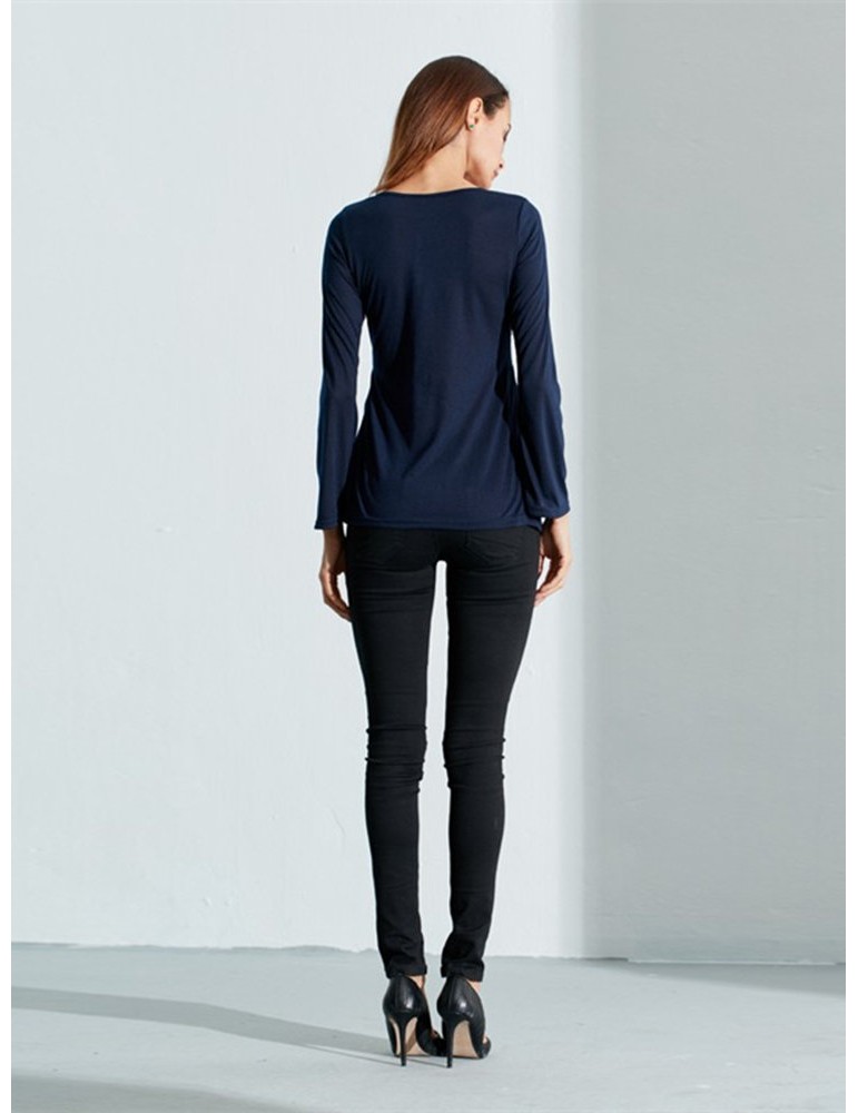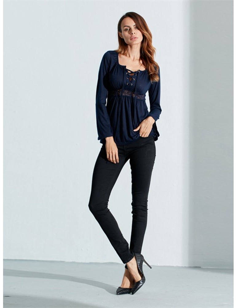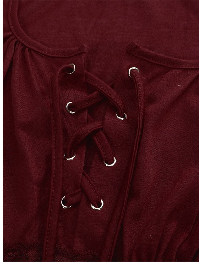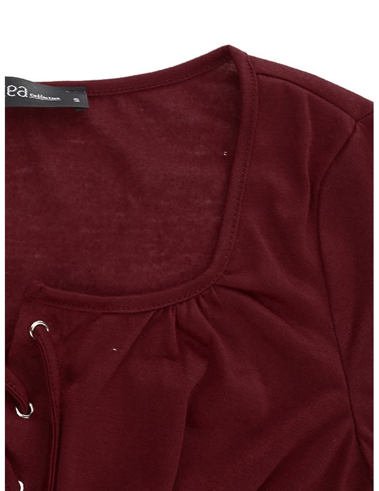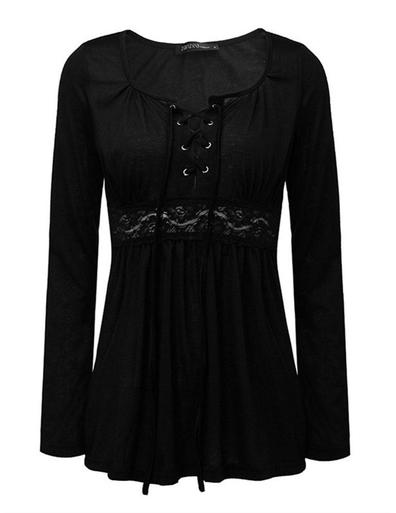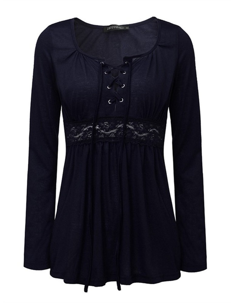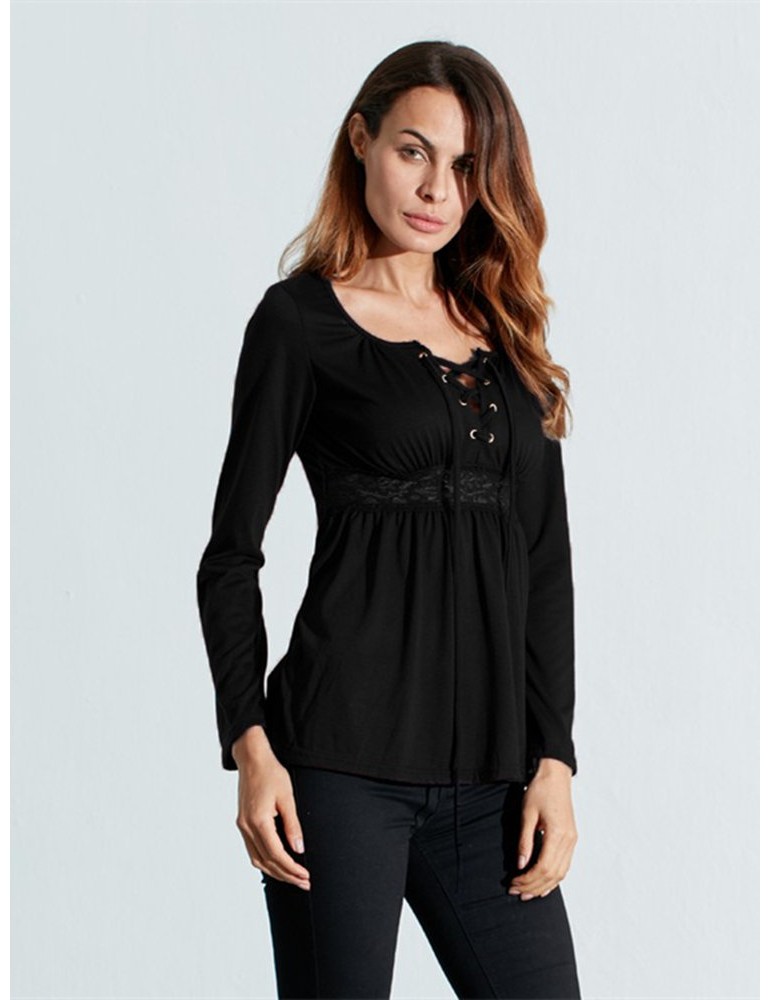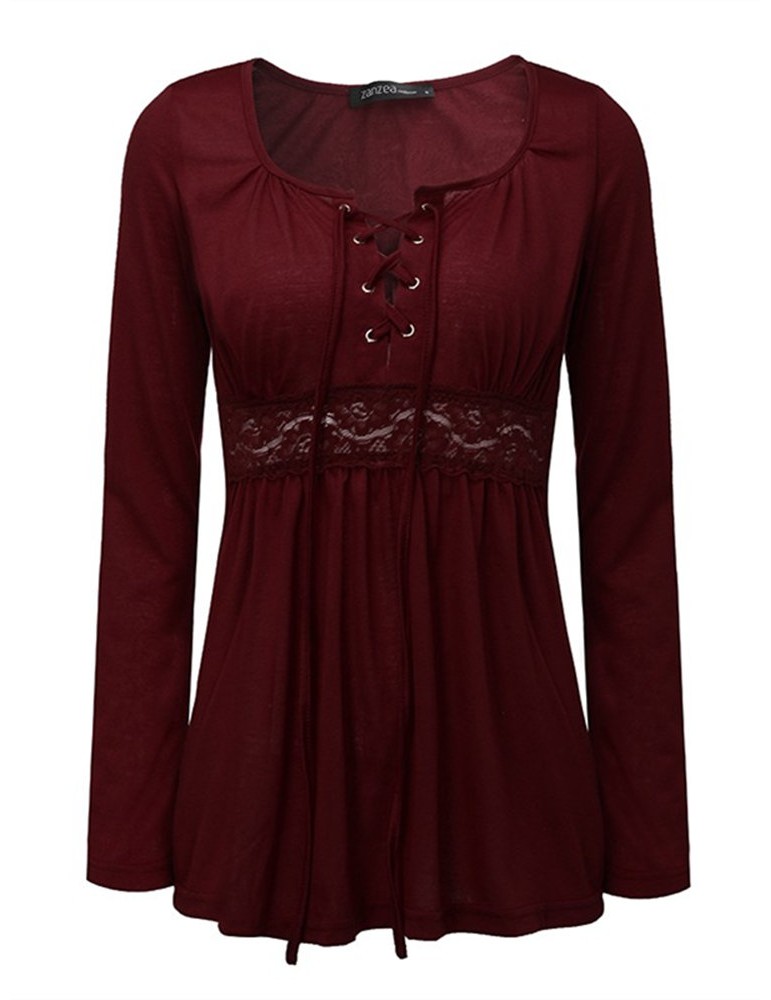 Women V-Neck Lace-up Floral Peplum Long Sleeve Shirts