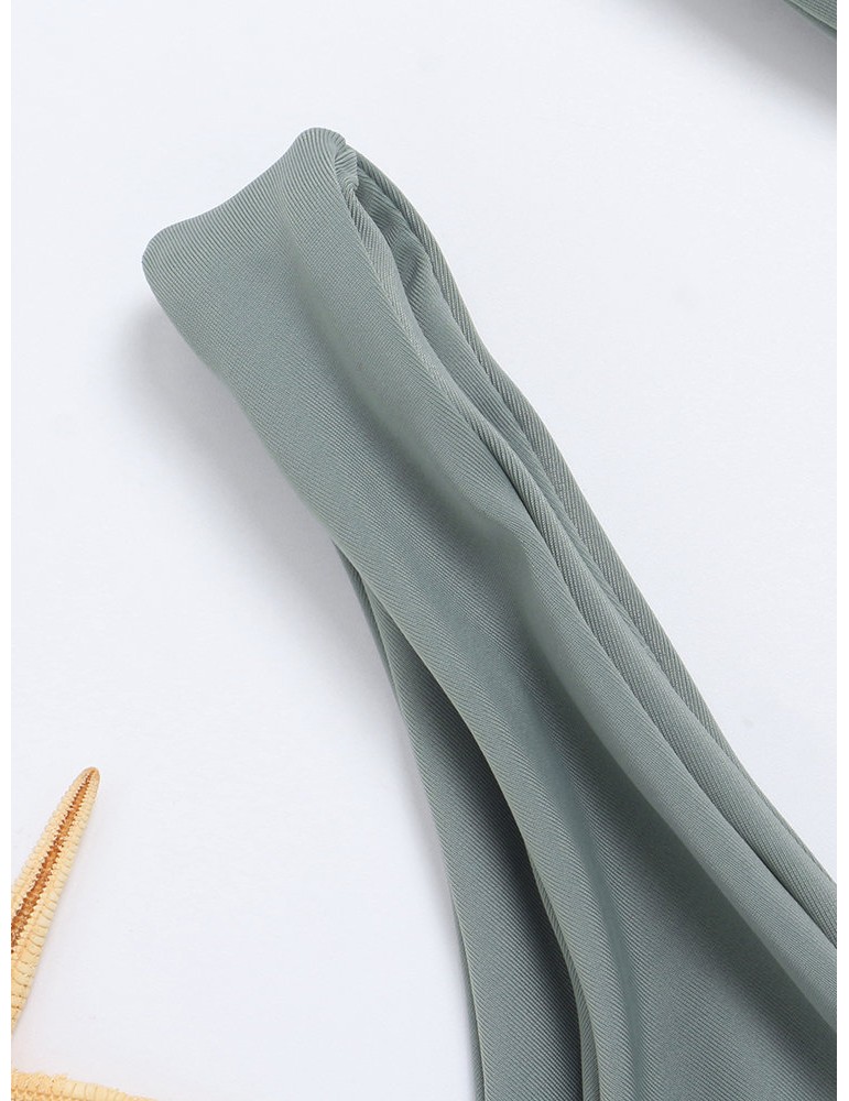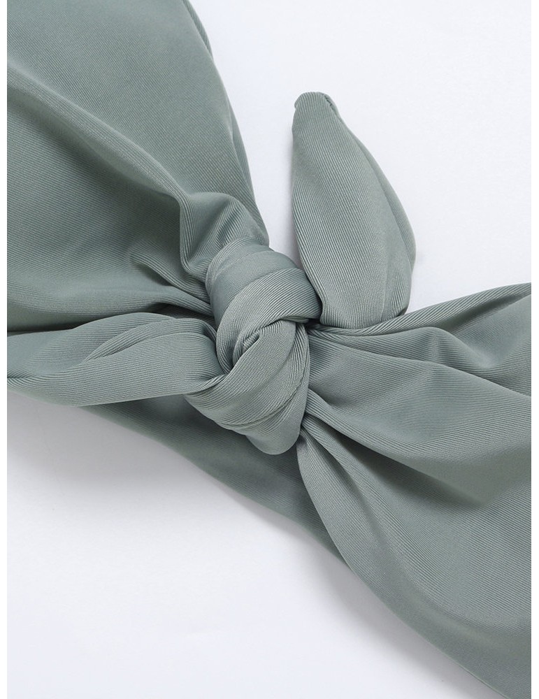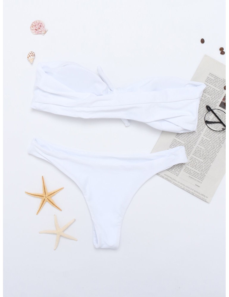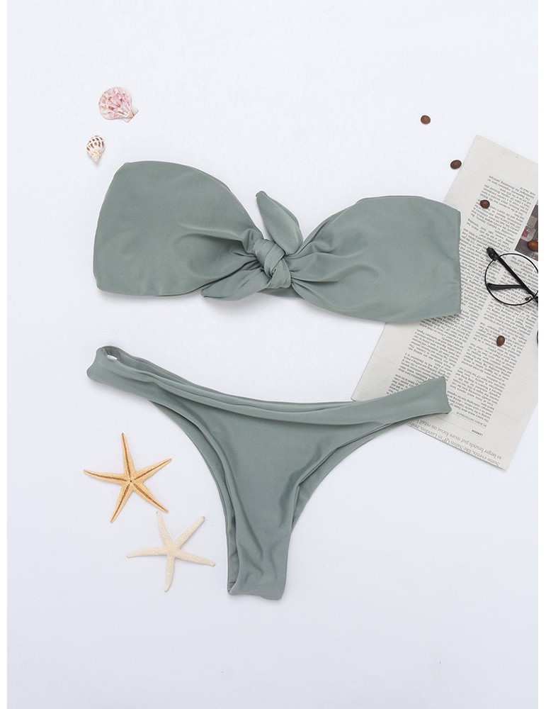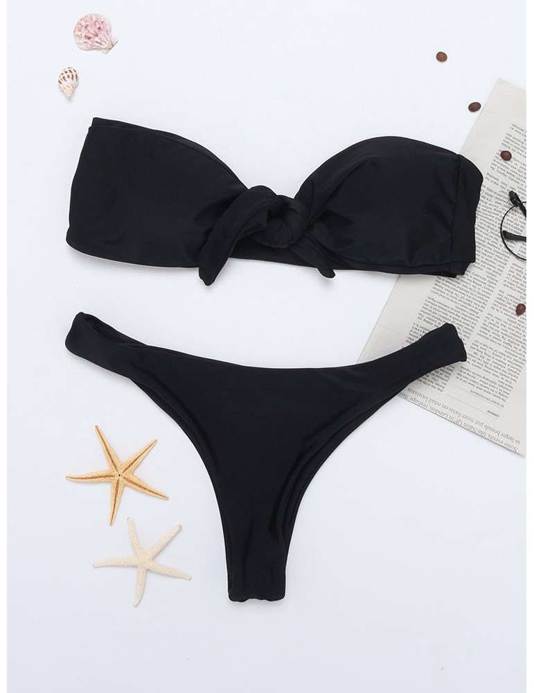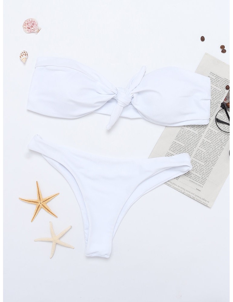 Tie Front High Cut Thong Strapless Solid Color Sexy Bikinis Swimsuits For Women