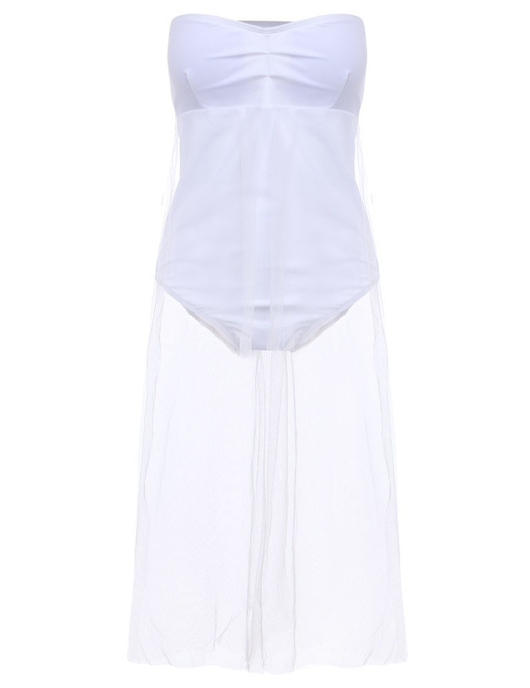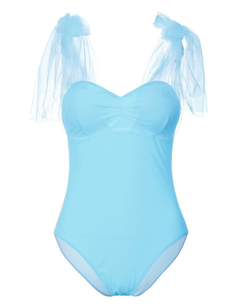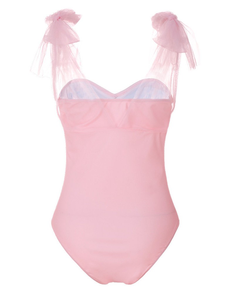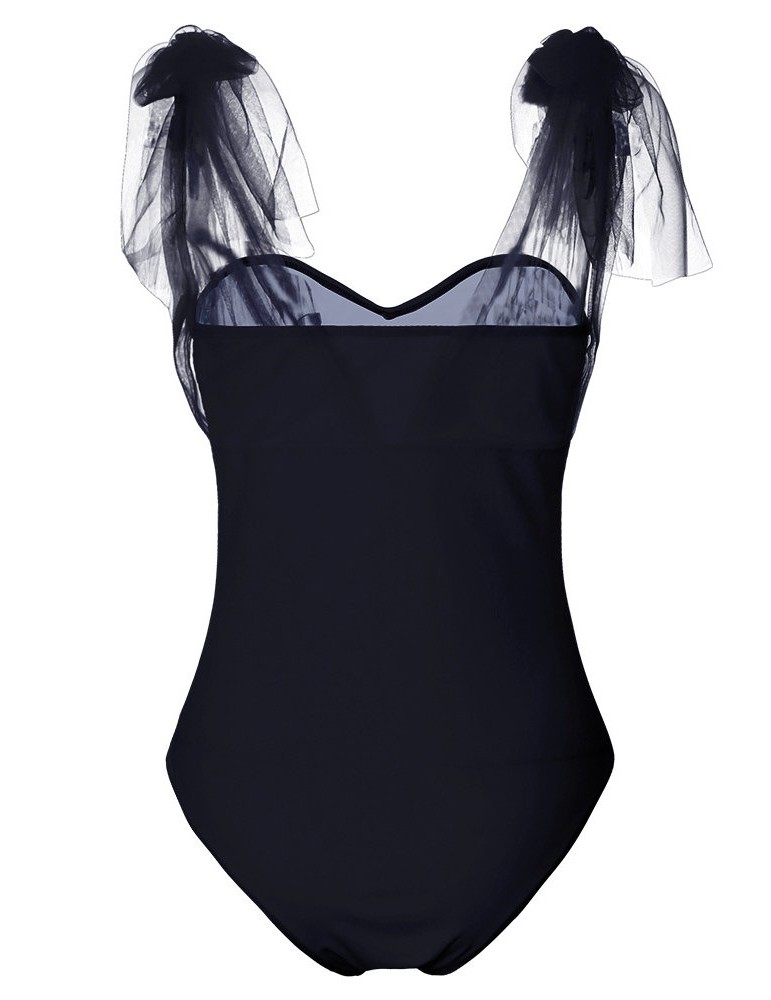 Women Mesh Two-Way Wearing Bowknot Strap One Piece Swimsuits