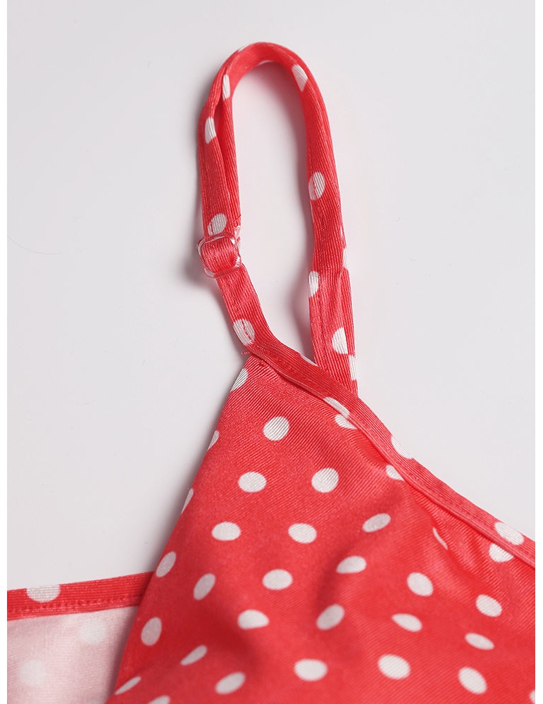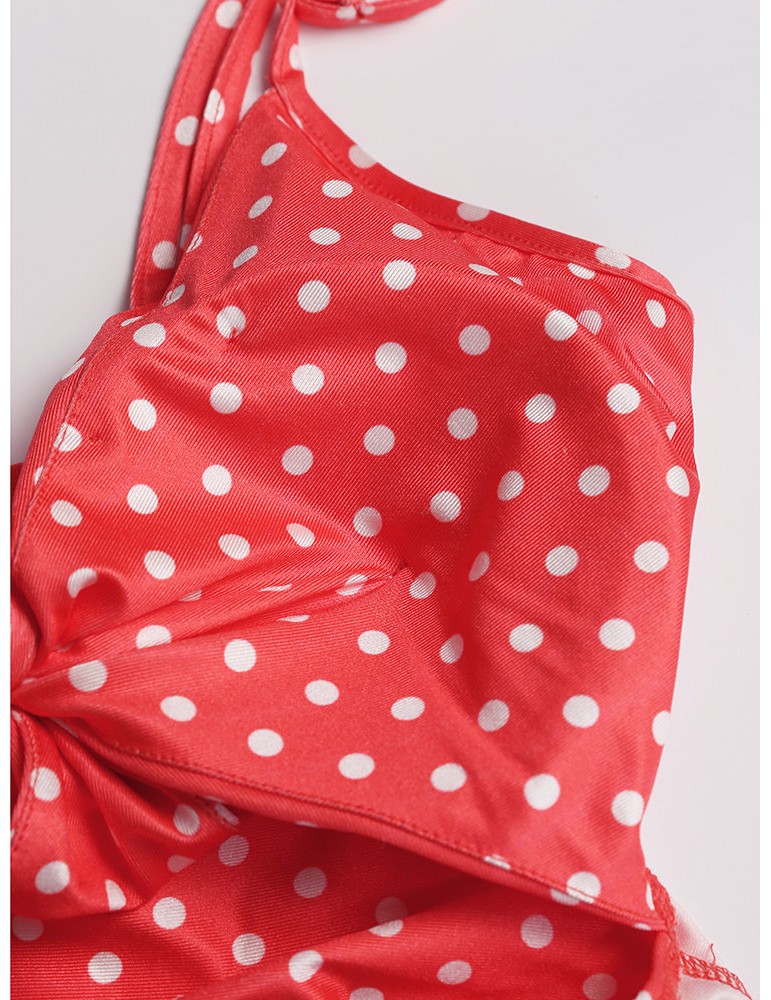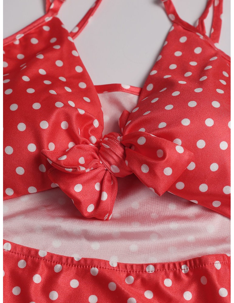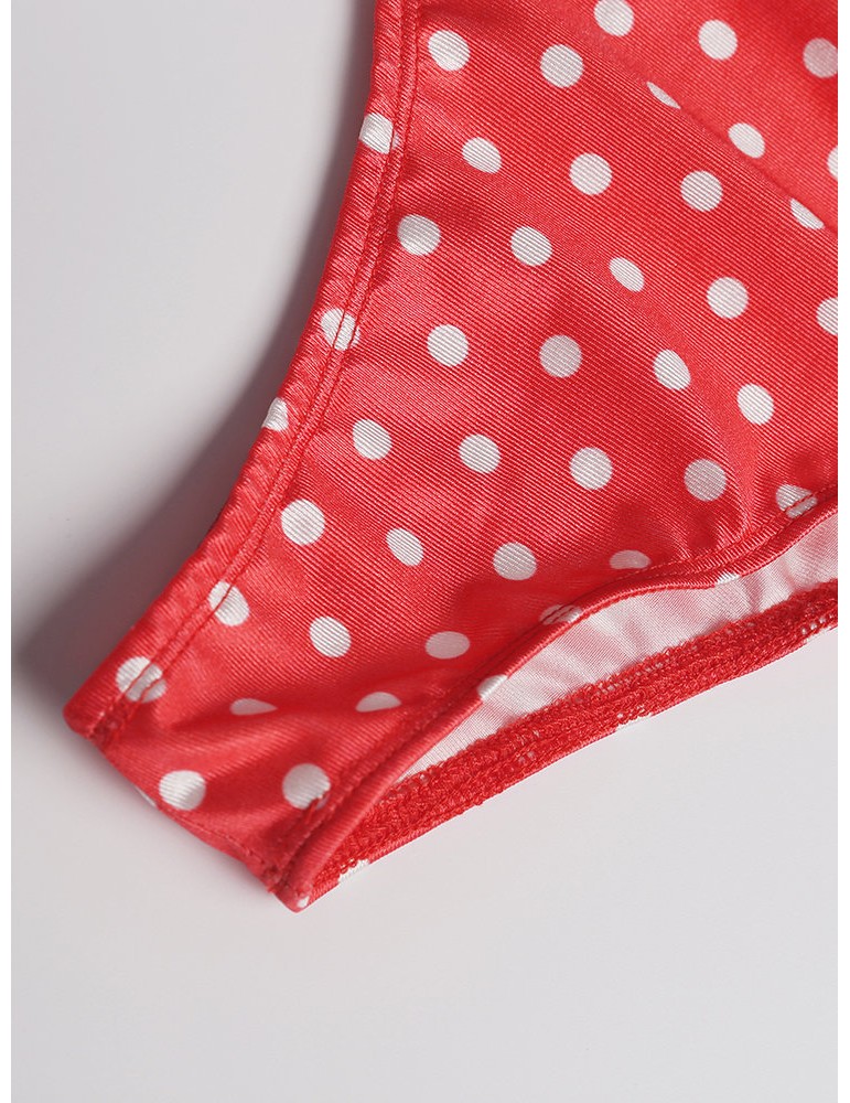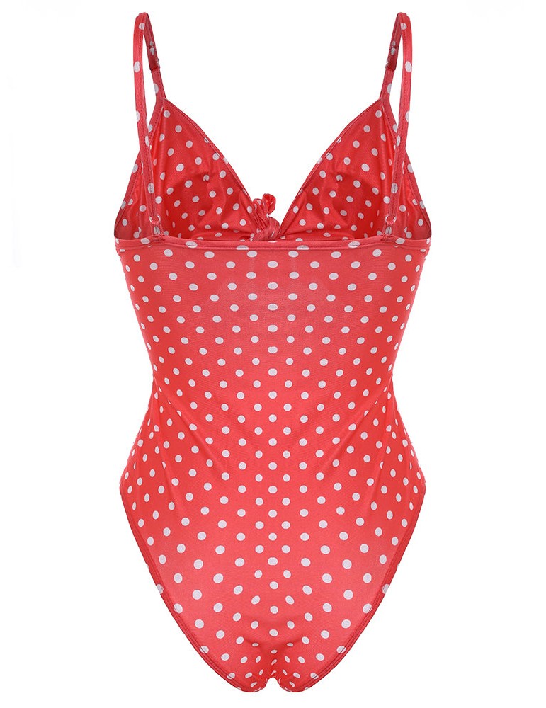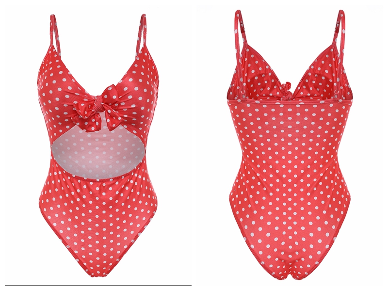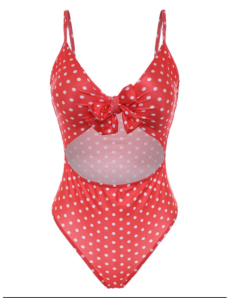 Women Sexy High Waist Polka Dot Bowknot Cut Out Tie Front Monokini Swimsuits For Women