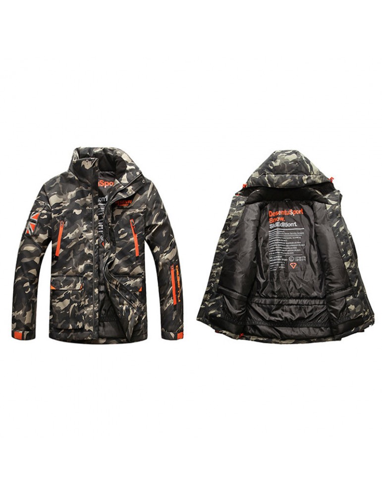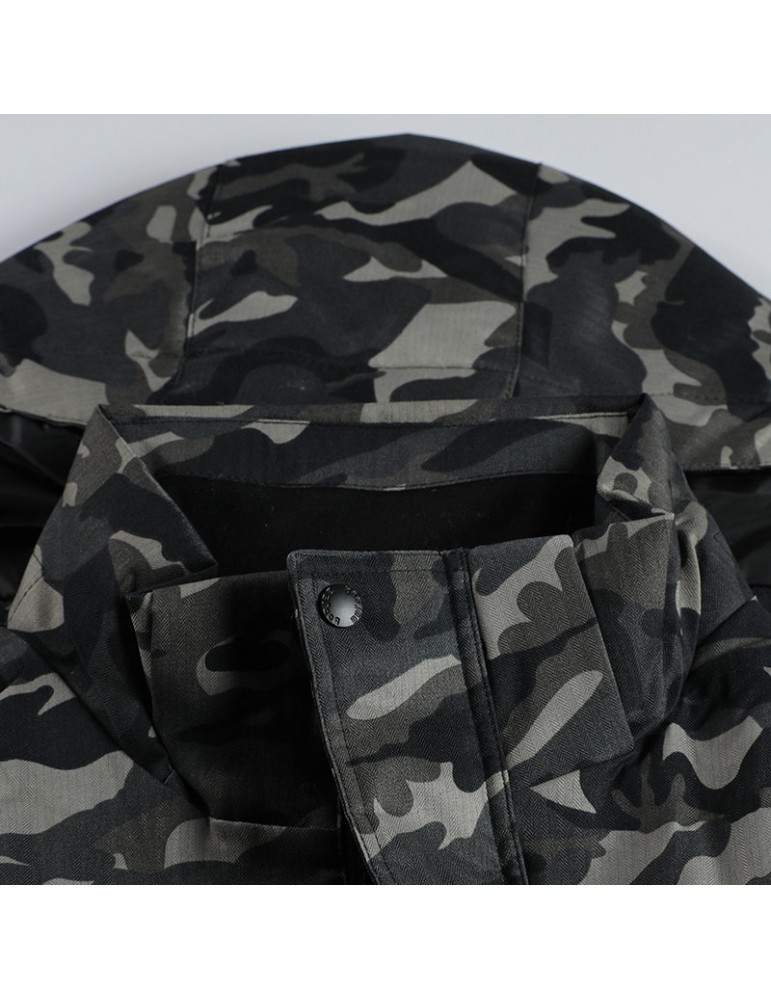 Mens Camo Printing Detachable Hooded Multi Pockets Outdoor Windproof Thickened Warm Jacket