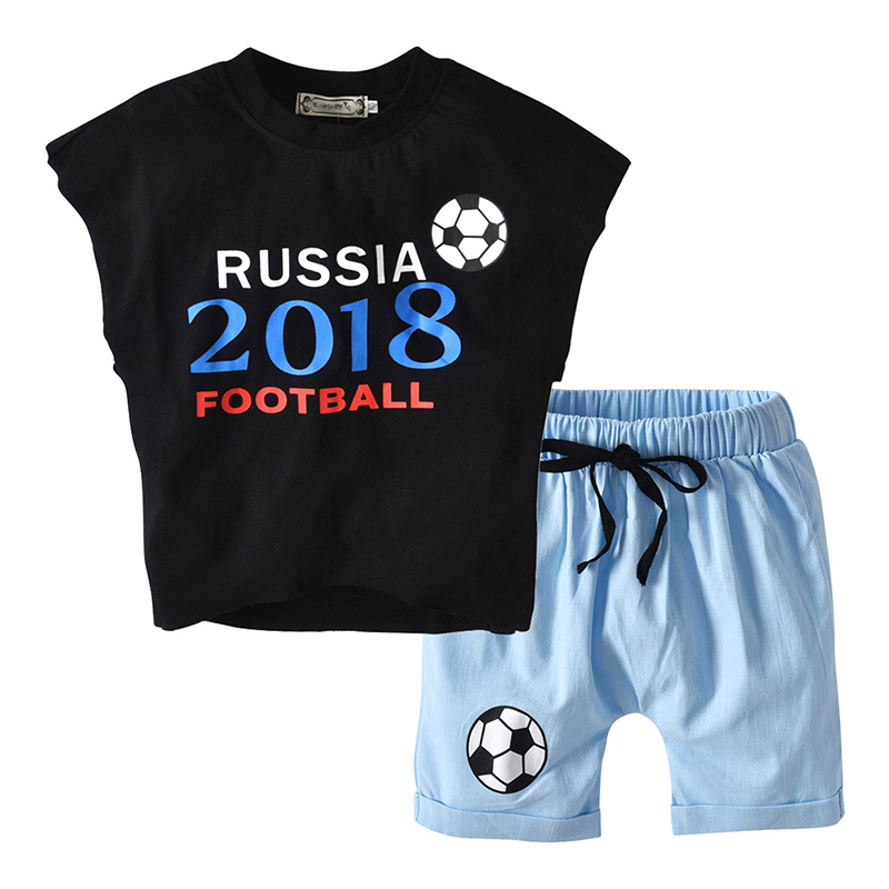 World Cup Football Girls Boys Clothes Set Toddler Printed Vest+ Shorts For 2Y-7Y