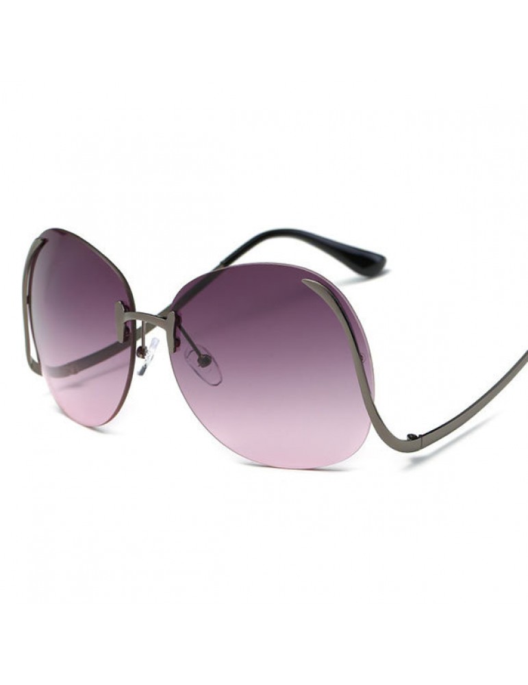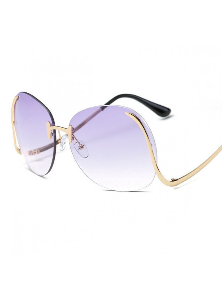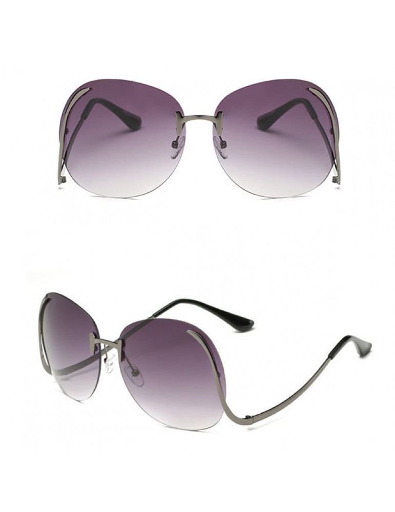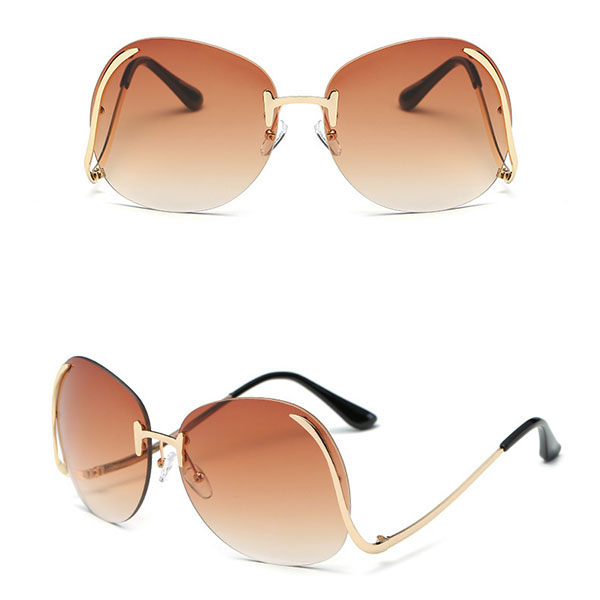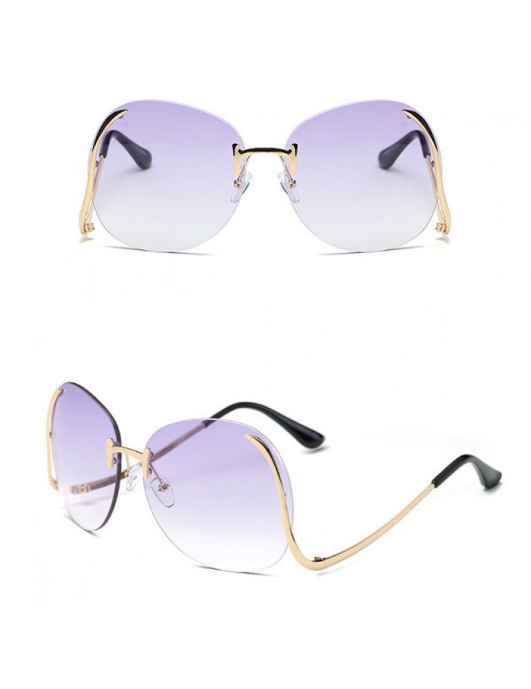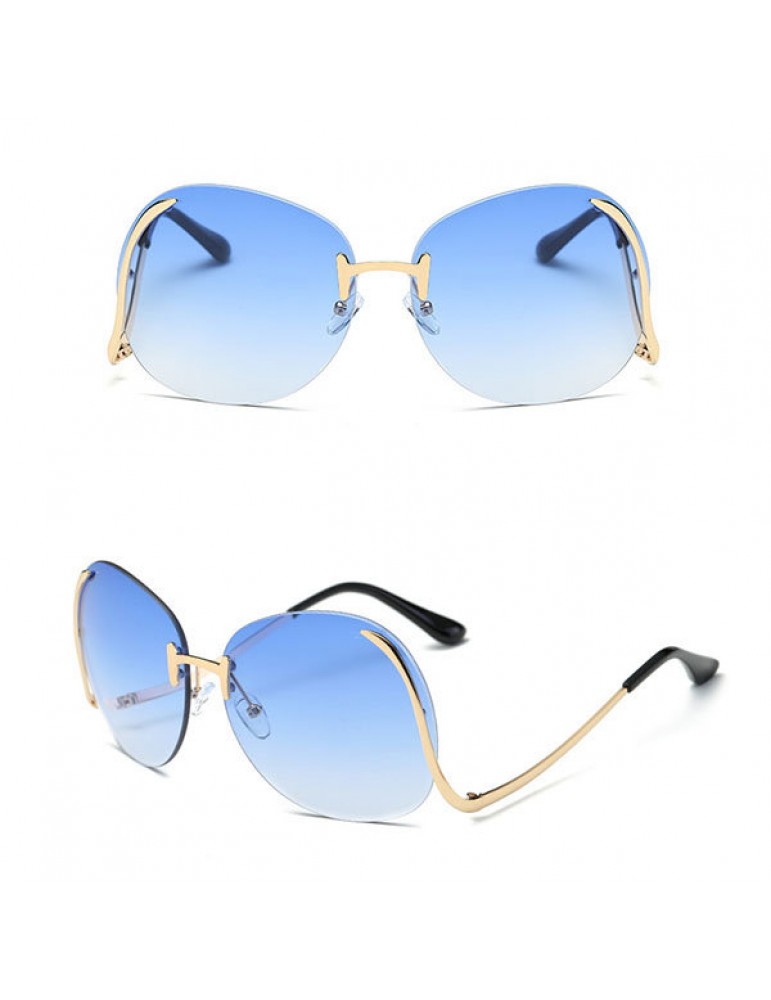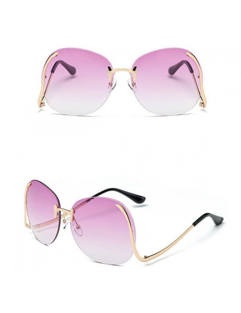 Women Frameless Curved Leg Anti-UV Sunglasses Gradient Lens Colorful Oceanic Mirror Glasses